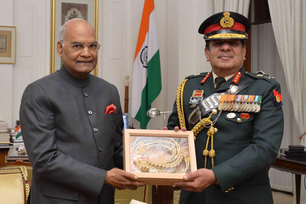 | Caption: | Lt. Gen. A.B. Shivane, Director General, Mechanised Forces alongwith his wife Smt. Sudha Shivane meeting with the President of India, Shri Ram Nath Kovind, at Rashtrapati Bhavan on December 13, 2017. |