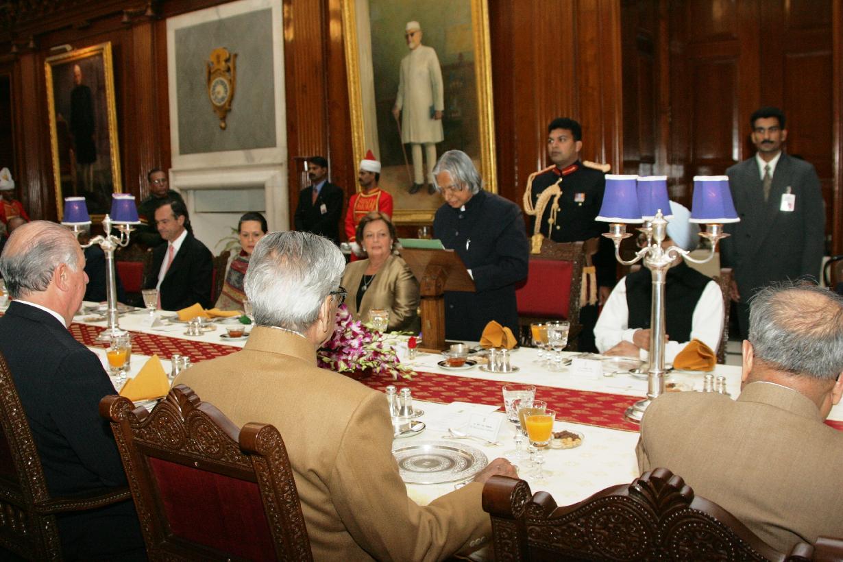 | Caption: | The President of India, Dr A P J Abdul Kalam at the Banquet Hosted in Honour of the President of Chile, His Excellency Mr Ricardo Lagos and his wife Mrs Luisa Duran de Lagos at the Banquet Hall of Rashtrapati Bhavan in New Delhi on Jan 20, 2005 |