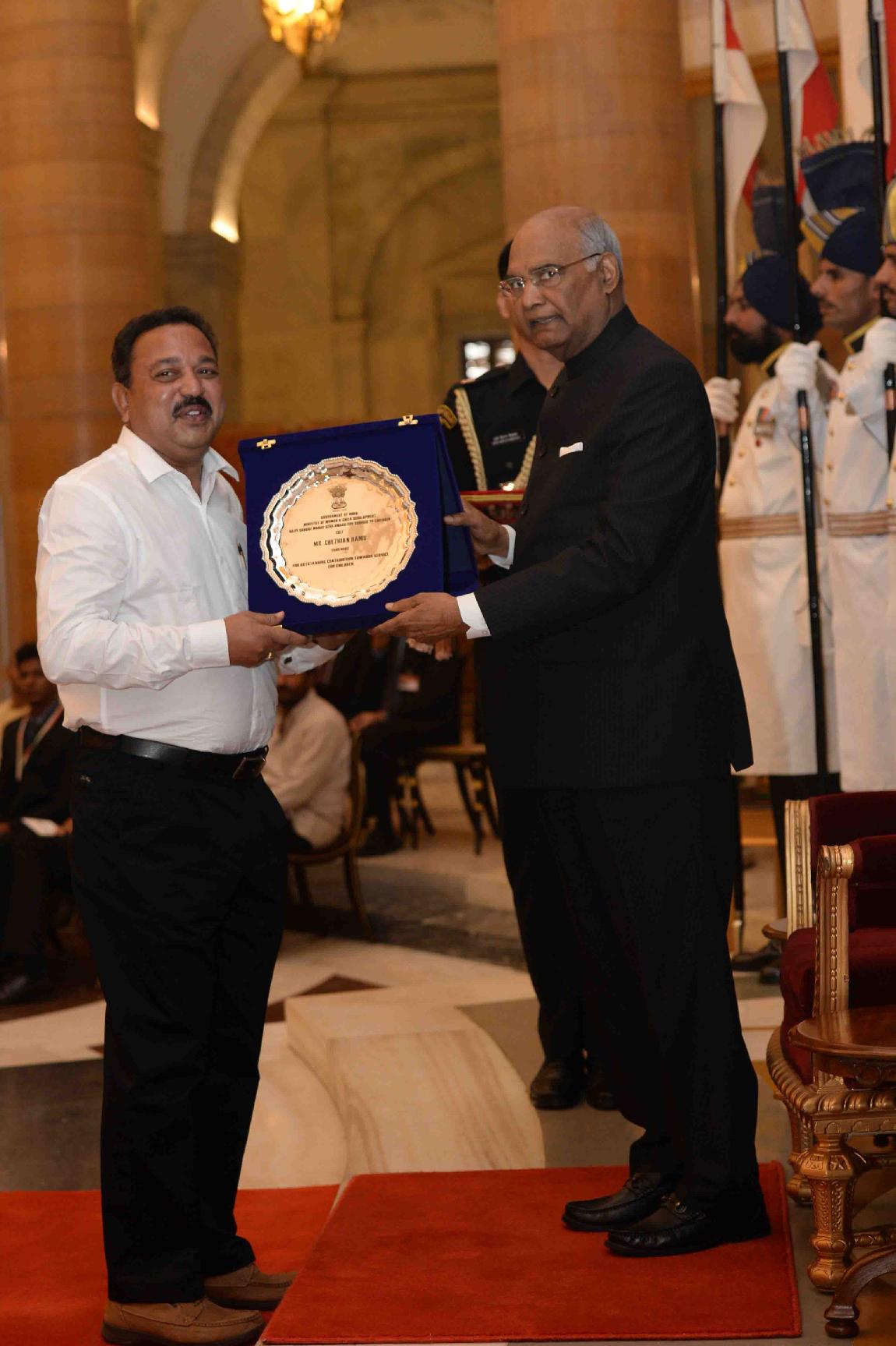 | Caption: | The President of India, Shri Ram Nath Kovind presenting the Rajiv Gandhi Manav Seva Awards 2017, on the occasion of Children s Day, at Rashtrapati Bhavan on November 14, 2017. |