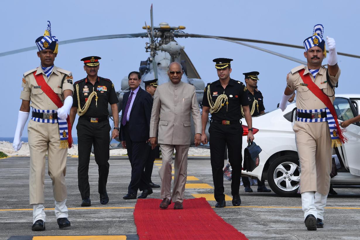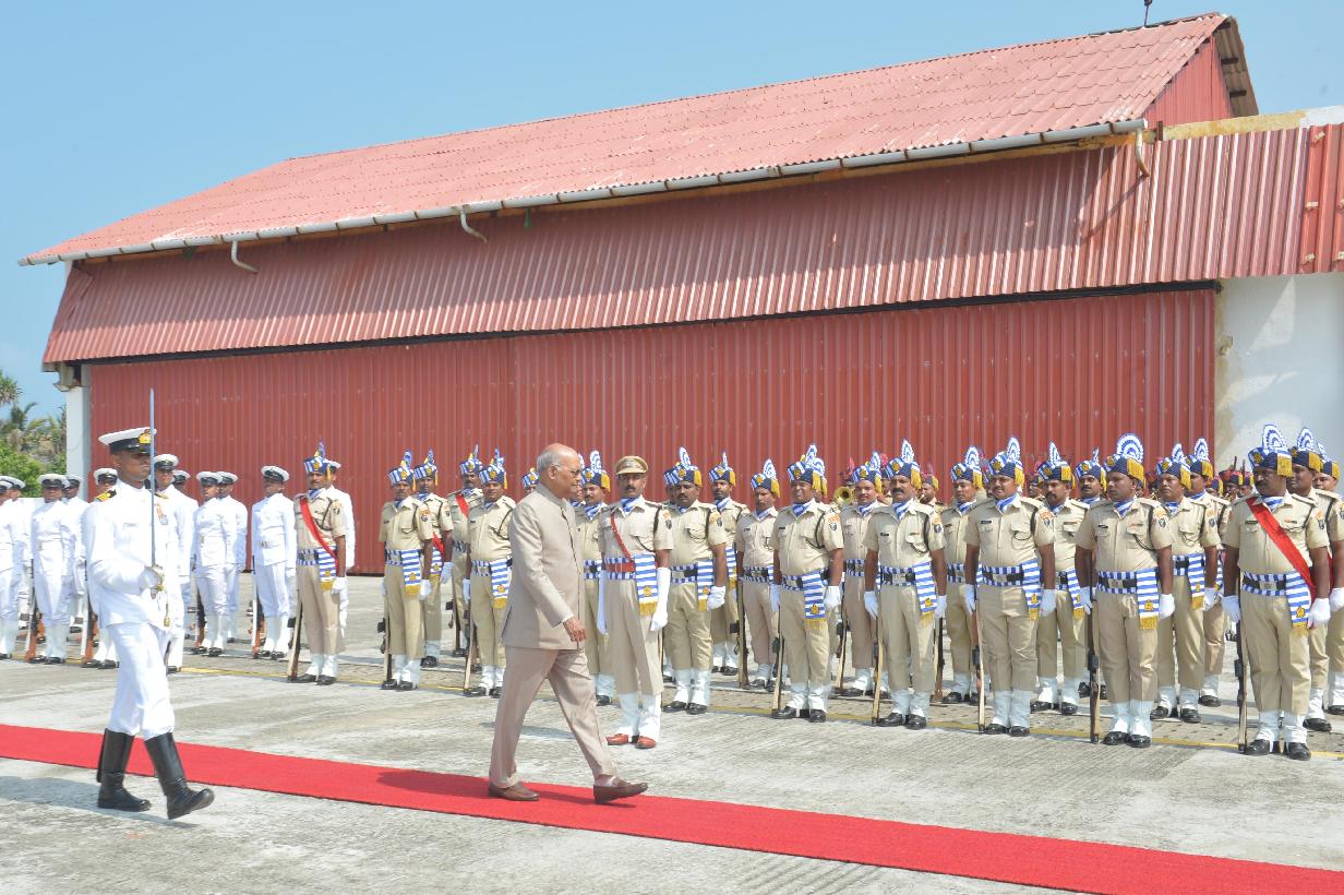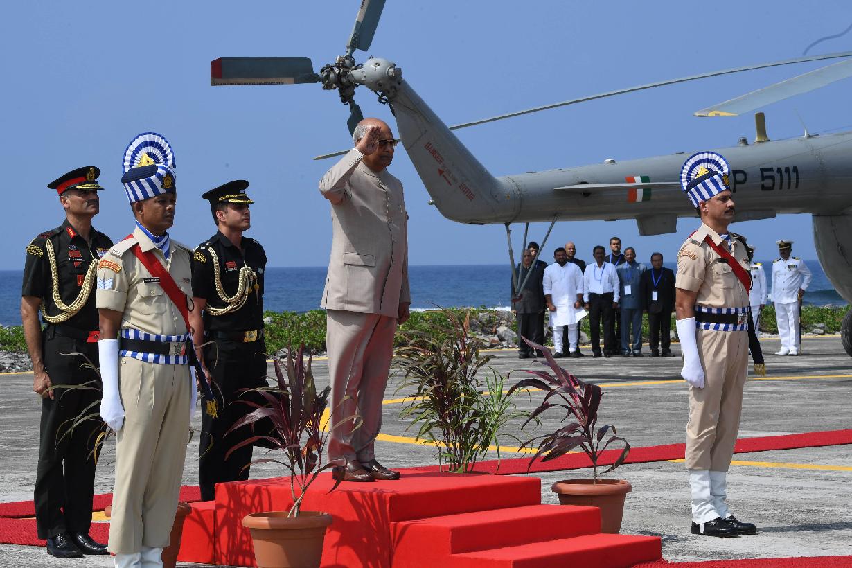 | Caption: | The President of India, Shri Ram Nath Kovind inspecting the Guard of Honour on his arrival at Kavaratti Helipad, in Lakshadweep on January 07, 2020. |