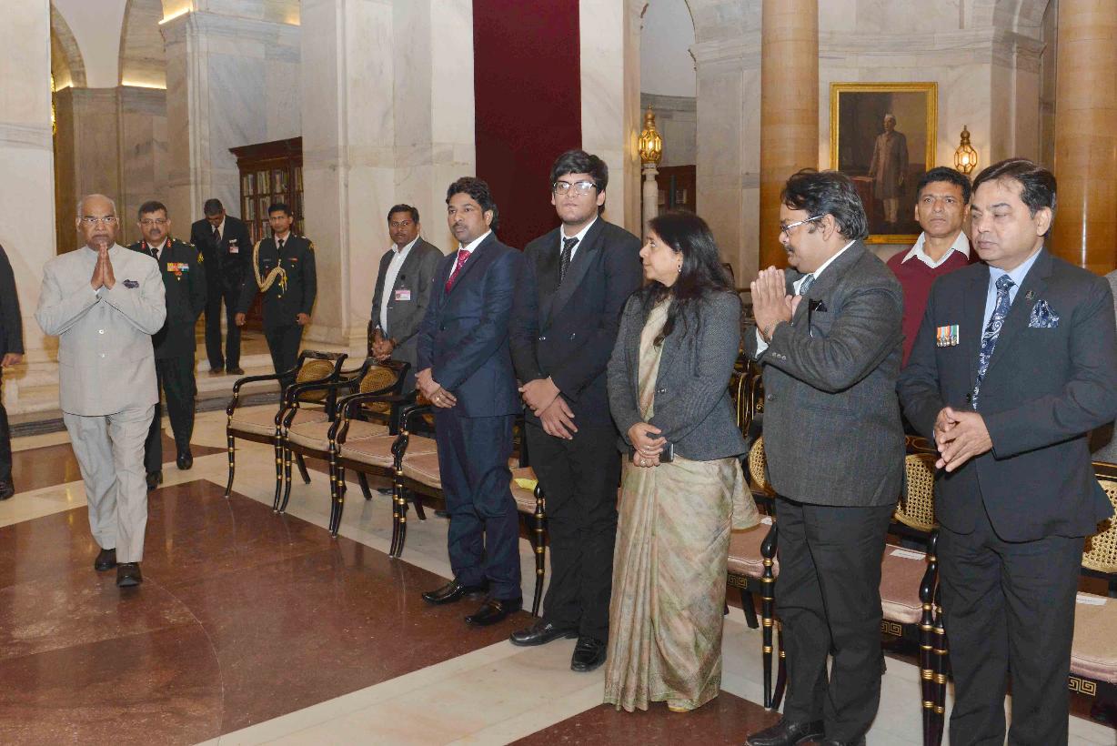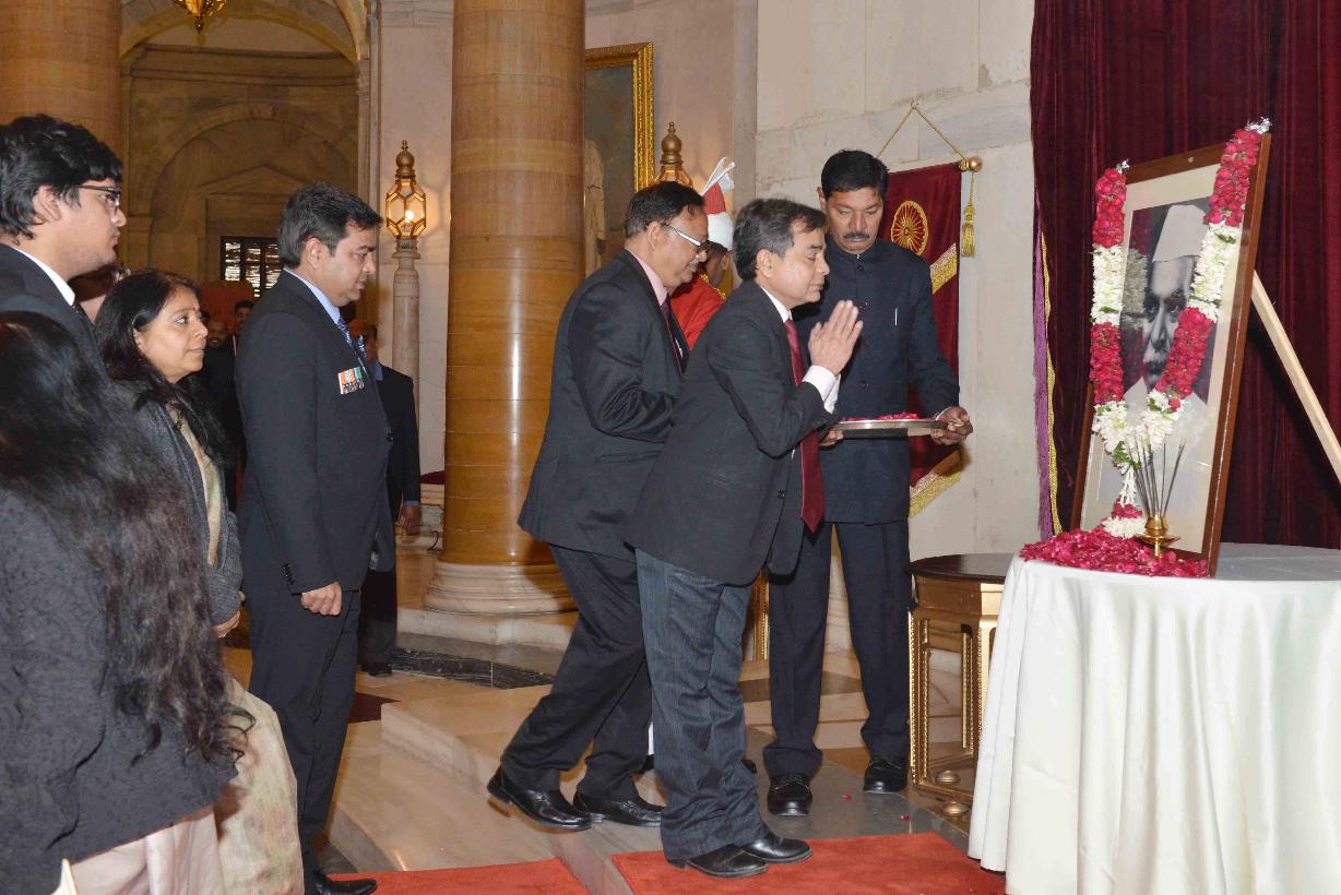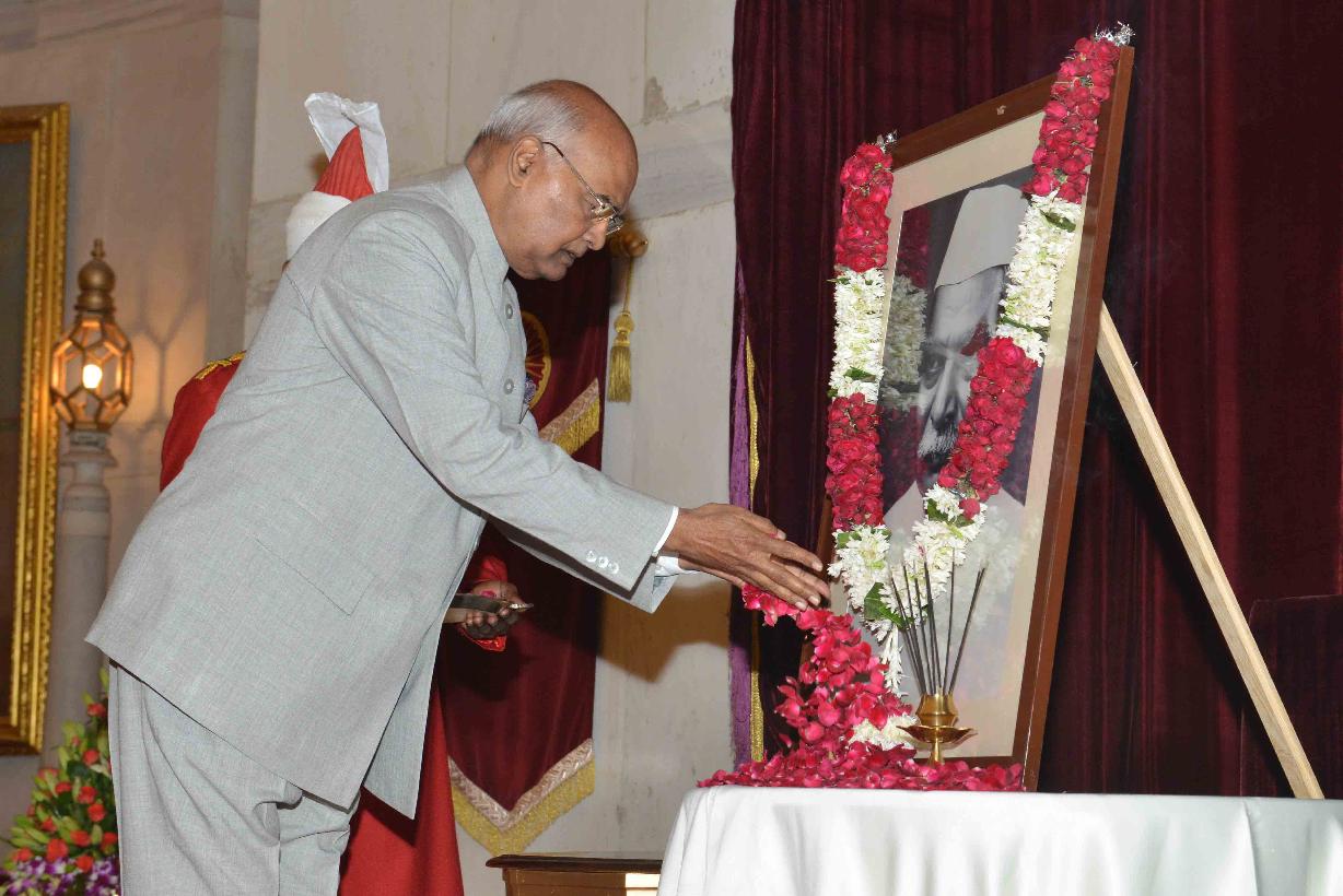 | Caption: | The President of India, Shri Ram Nath Kovind paying floral tributes to Dr. Rajendra Prasad, the first President of India, on his birth anniversary, at Rashtrapati Bhavan on December 03, 2017. Family members of Dr. Rajendra Prasad also paid tributes to him on the occasion. |