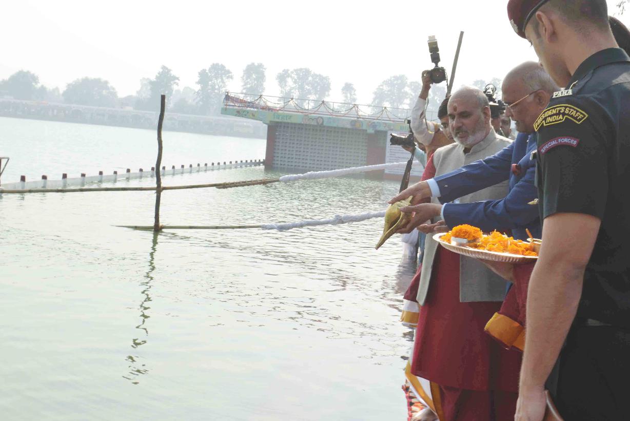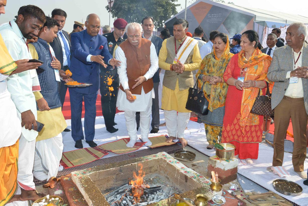 | Caption: | The President of India, Shri Ram Nath Kovind offering floral to Srimad Bhagwad Gita and Purnahuti of Gita Yajna, at Kurukshetra, in Haryana on November 25, 2017. |