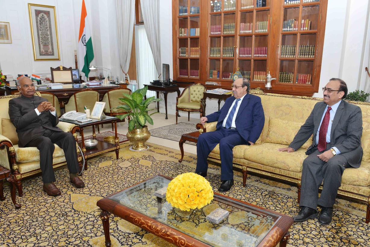 | Caption: | Shri Anand Kumar Singh, Retd. Joint Secretary, Rajya Sabha Secretariat along with his brother Shri Ashok Kumar Singh, Additional Secretary, Lok Sabha meeting with the President of India, Shri Ram Nath Kovind, at Rashtrapati Bhavan on December 09, 2017. |