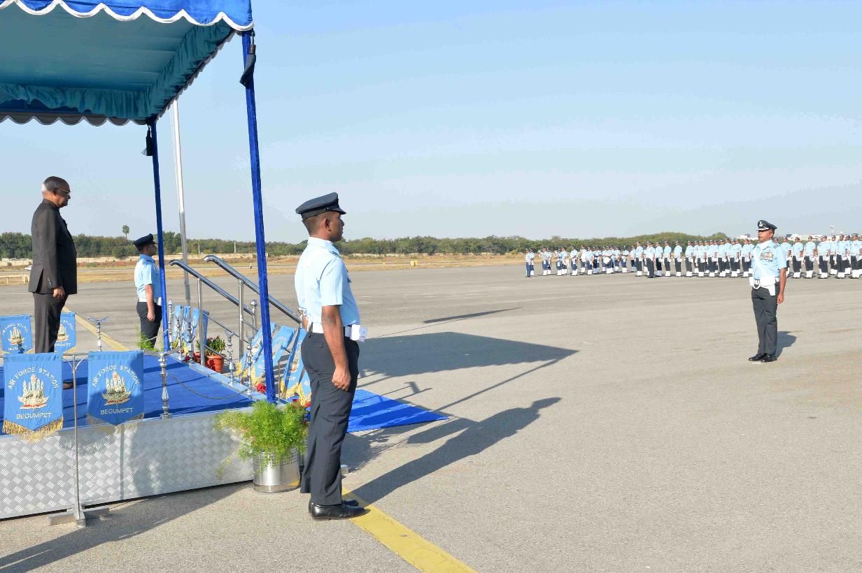 | Caption: | The President of India, Shri Ram Nath Kovind inspecting the Guard of Honour, on his arrival, at Begumpet Airport, in Hyderabad on December 19, 2017. |