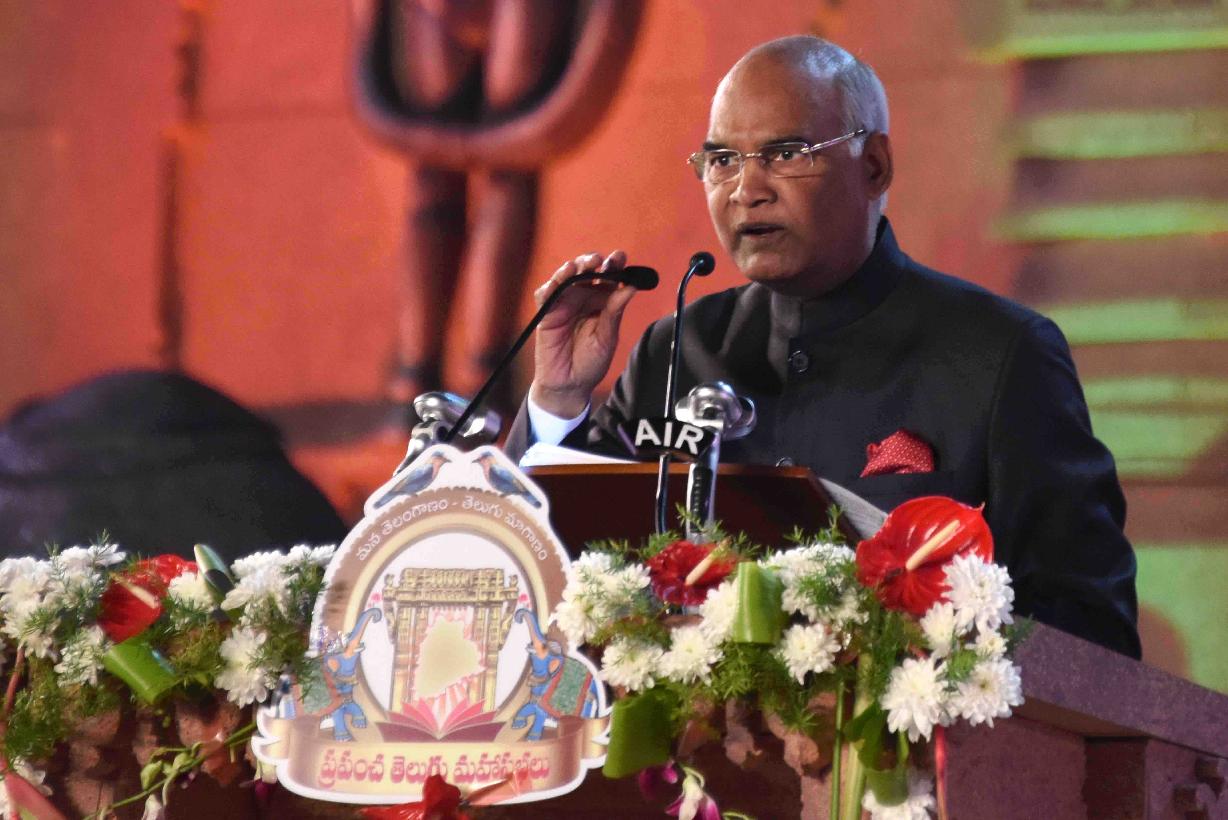 | Caption: | The President of India, Shri Ram Nath Kovind addressing the valedictory function of the World Telugu Conference, in Hyderabad on December 19, 2017. |