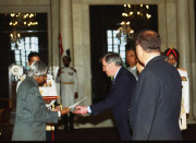 | Caption: | The Ambassador-Designate of Palestine to India, HE Mr Osama Musa Ali Musa presenting his credentials to the President of India, Dr A P J Abdul Kalam at the Ashok Hall of Rashtrapati Bhavan in New Delhi on April 16, 2003 |
