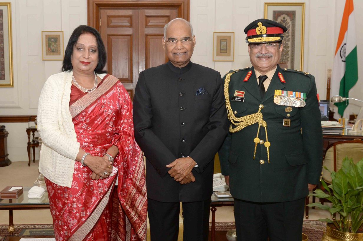 | Caption: | Lt. Gen. Ajai Kumar Sahgal, Director General, AAD alongwith his Spouse meeting with the President of India, Shri Ram Nath Kovind, at Rashtrapati Bhavan on December 14, 2017. |