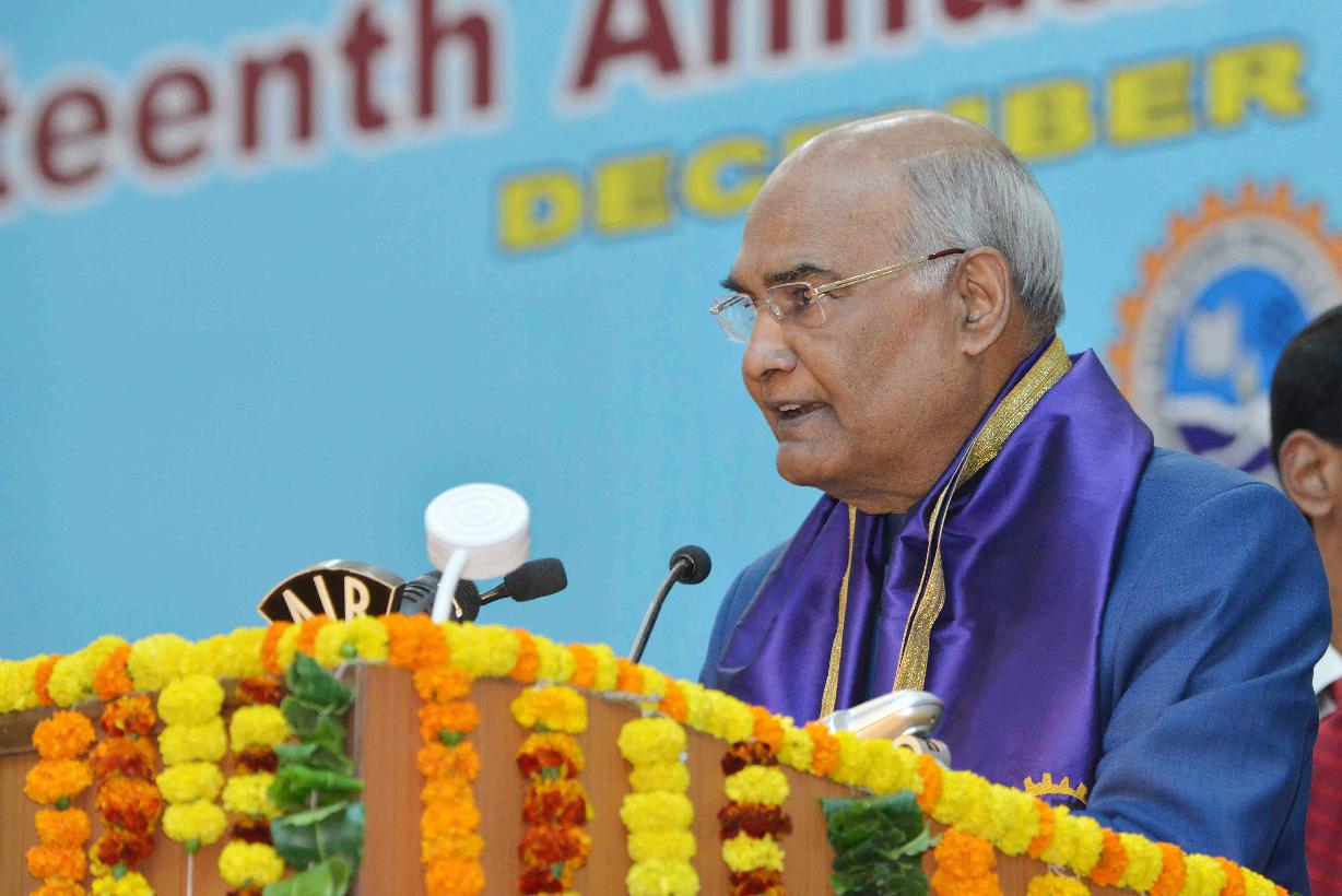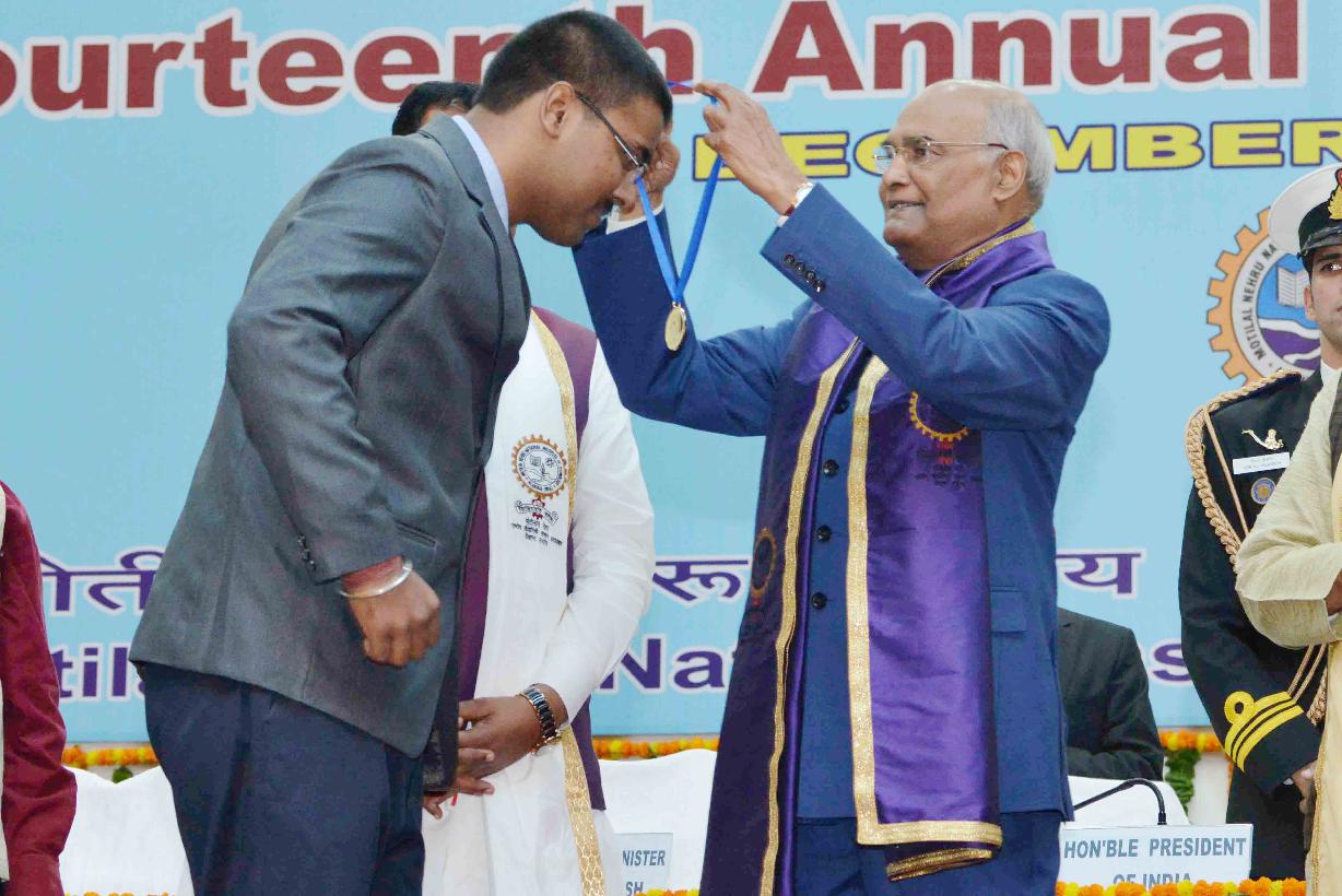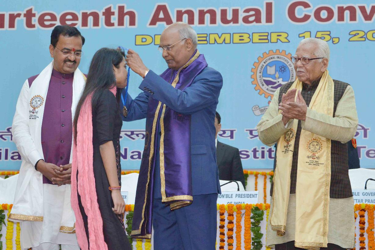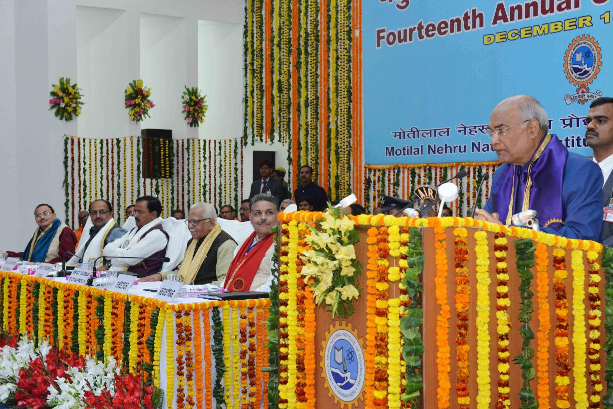 | Caption: | The President of India, Shri Ram Nath Kovind addressing the 14th Convocation of Motilal Nehru National Institute of Technology and presenting the Gold Medals to the students, at Allahabad, in Uttar Pradesh on December 15, 2017. |