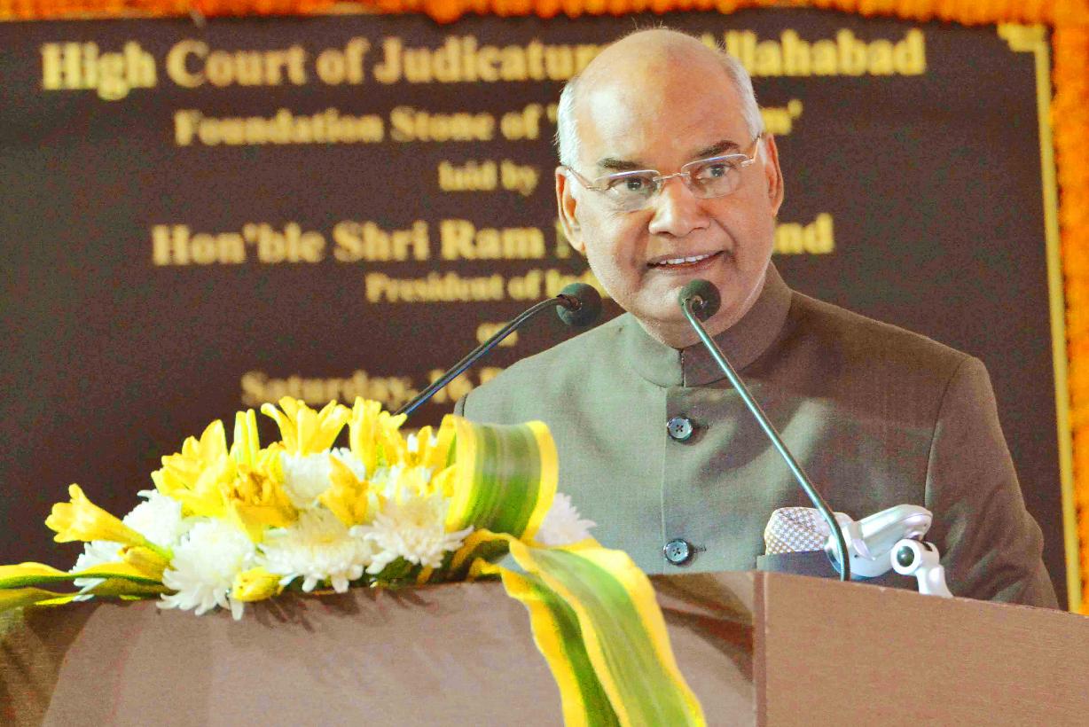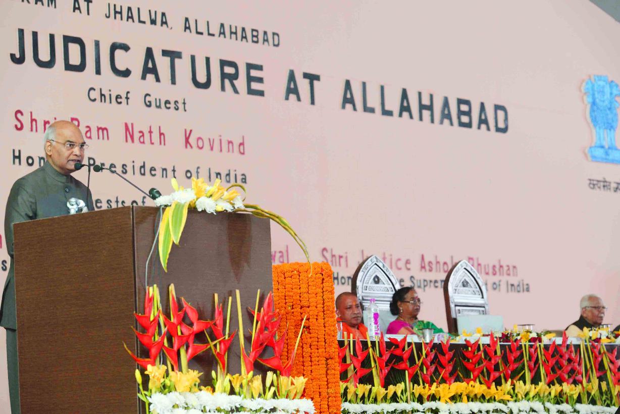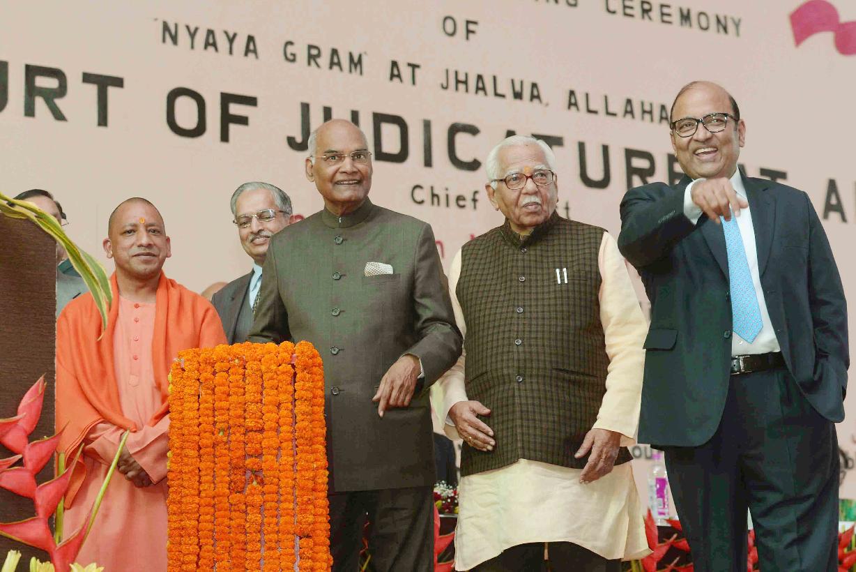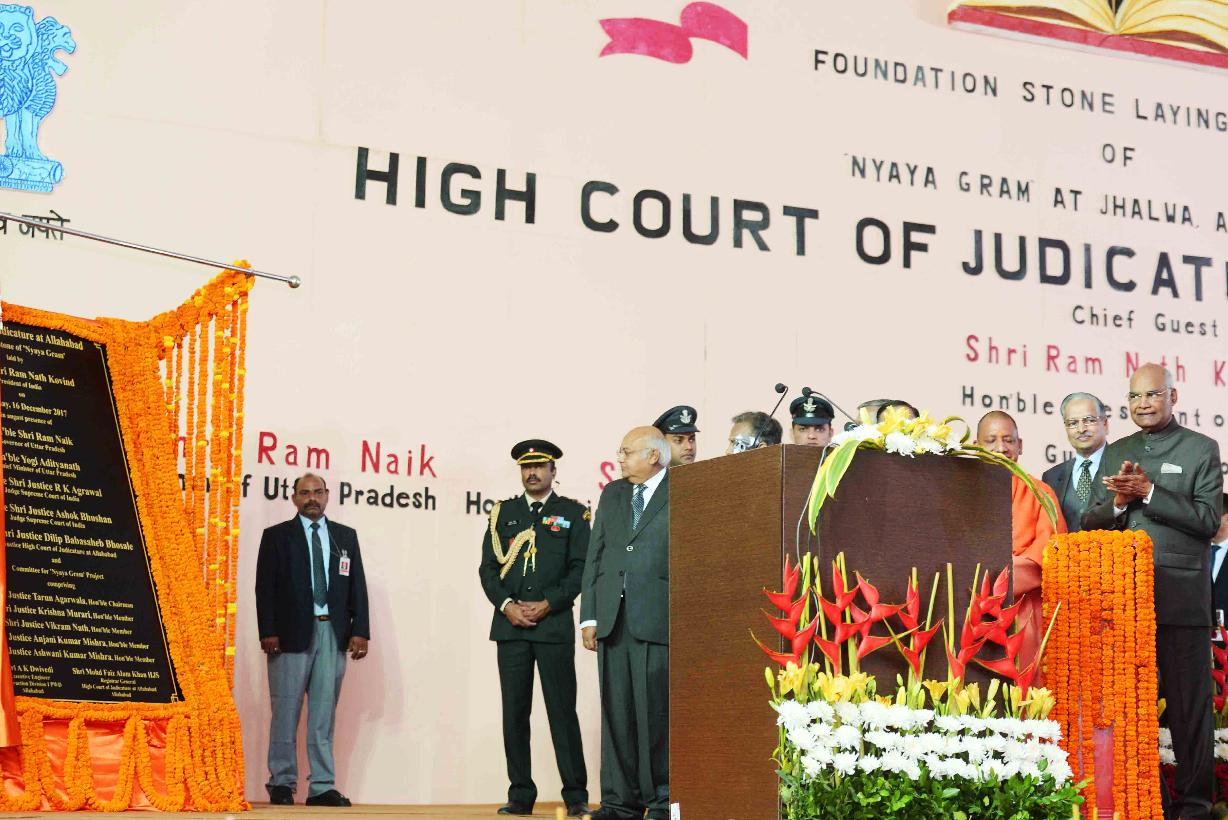 | Caption: | The President of India, Shri Ram Nath Kovind laying the foundation stone for "Naya-Gram" Project of High Court of Allahabad, in Uttar Pradesh on December 16, 2017. |