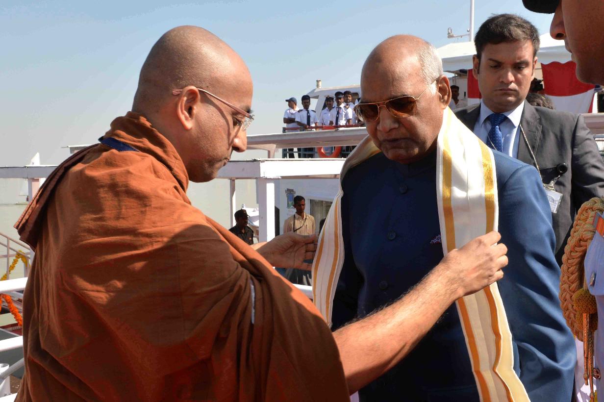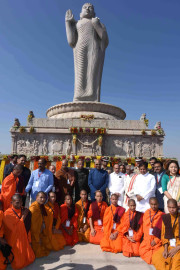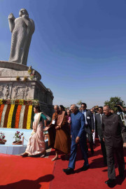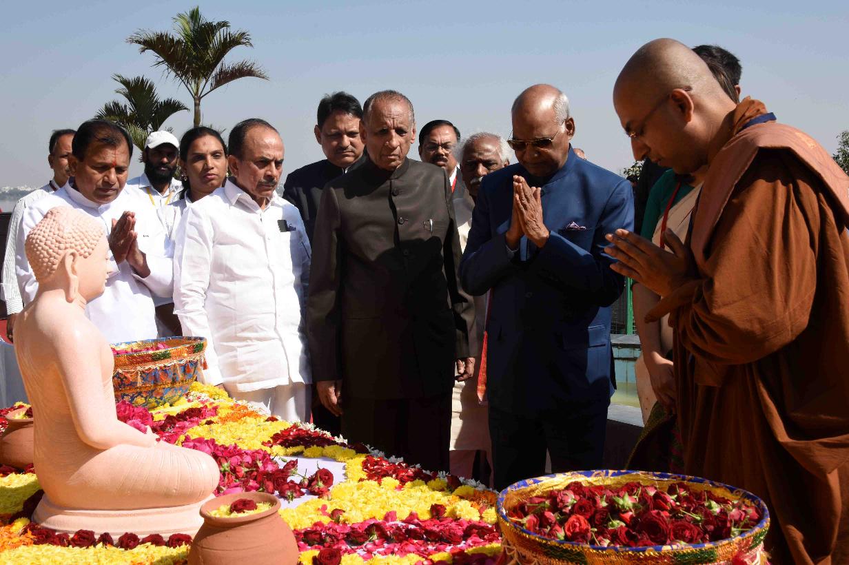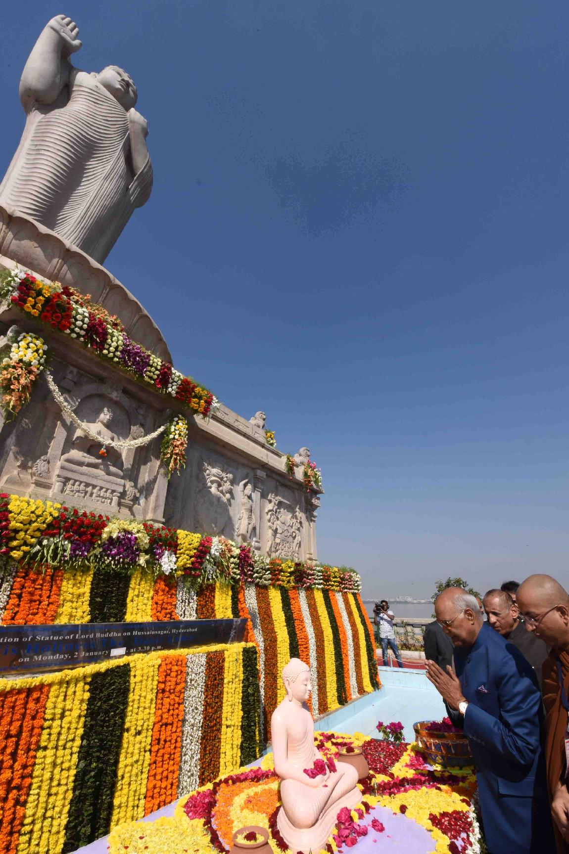 | Caption: | The President of India, Shri Ram Nath Kovind paying floral tributes at the statue of Lord Buddha, at Hussain Sagar Lake, in Hyderabad on December 20, 2017. |