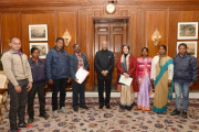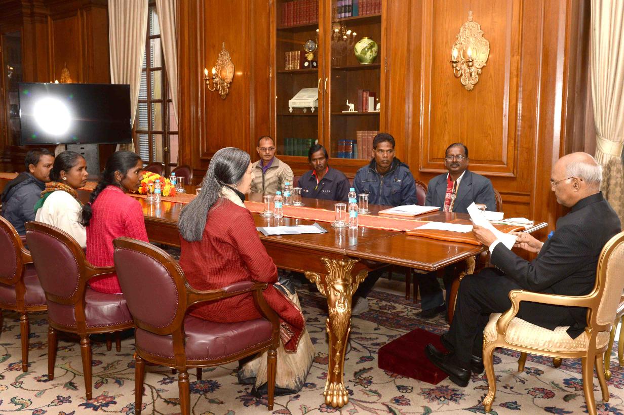 | Caption: | Smt. Brinda Karat, Ex-MP (RS) & Polit Bureau Member, CPI (M) alongwith a Tribal Delegation from Jharkhand meeting with the President of India, Shri Ram Nath Kovind, at Rashtrapati Bhavan on December 22, 2017. |