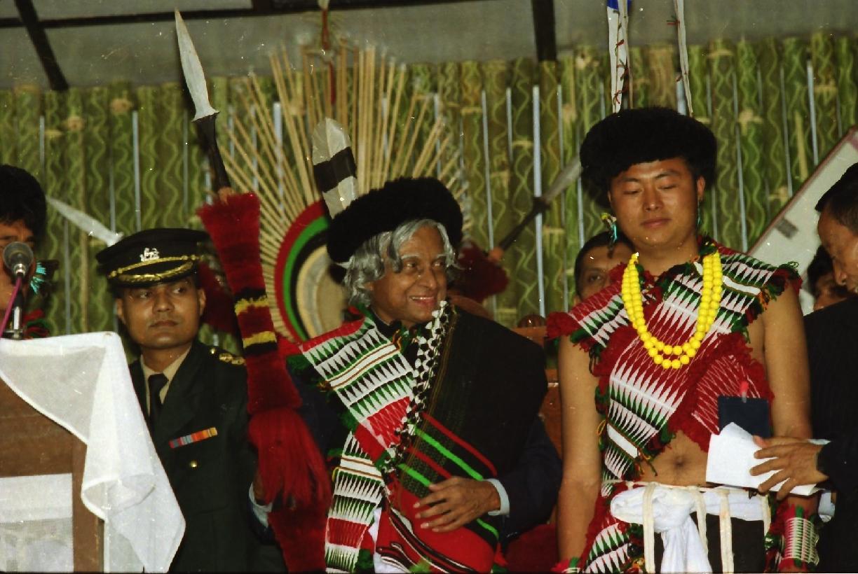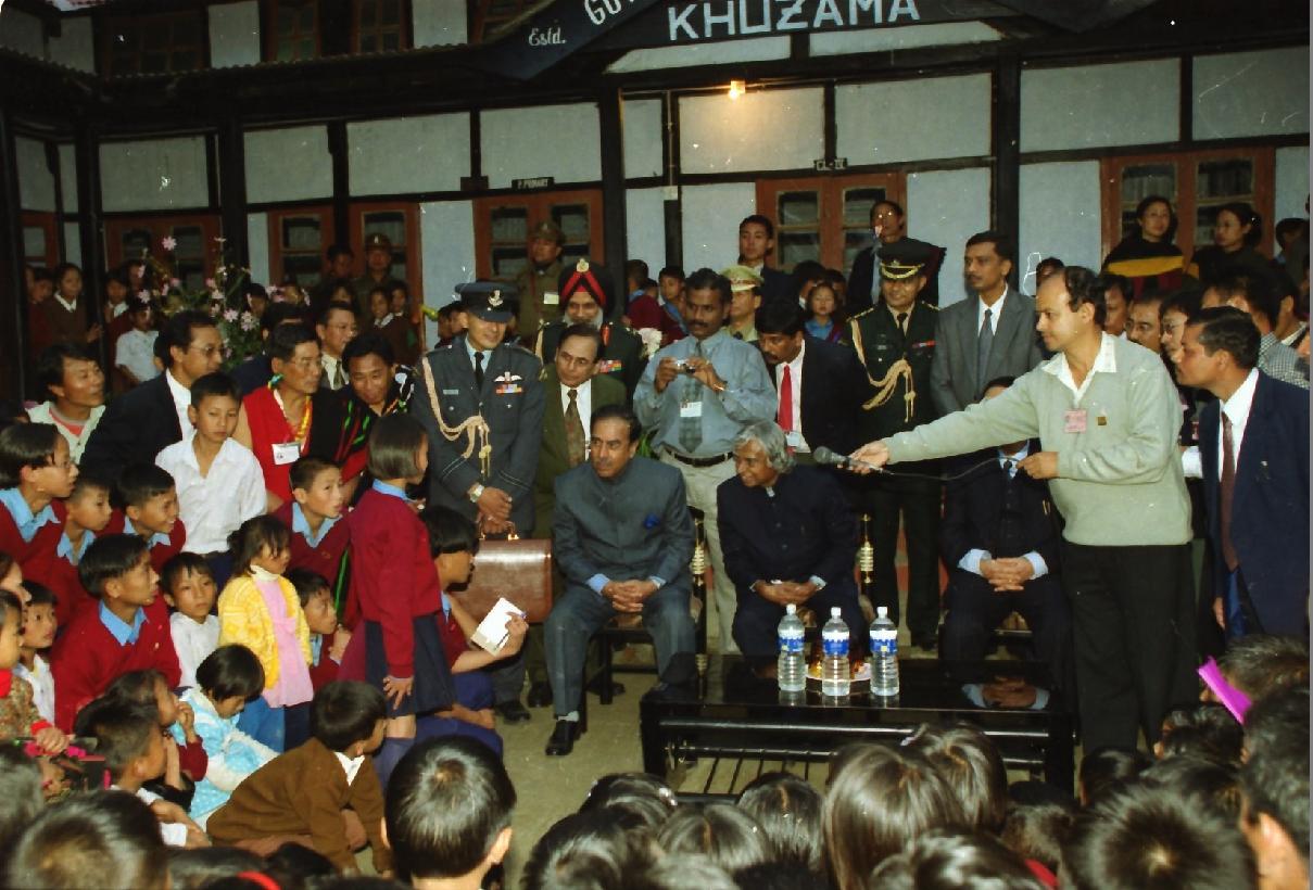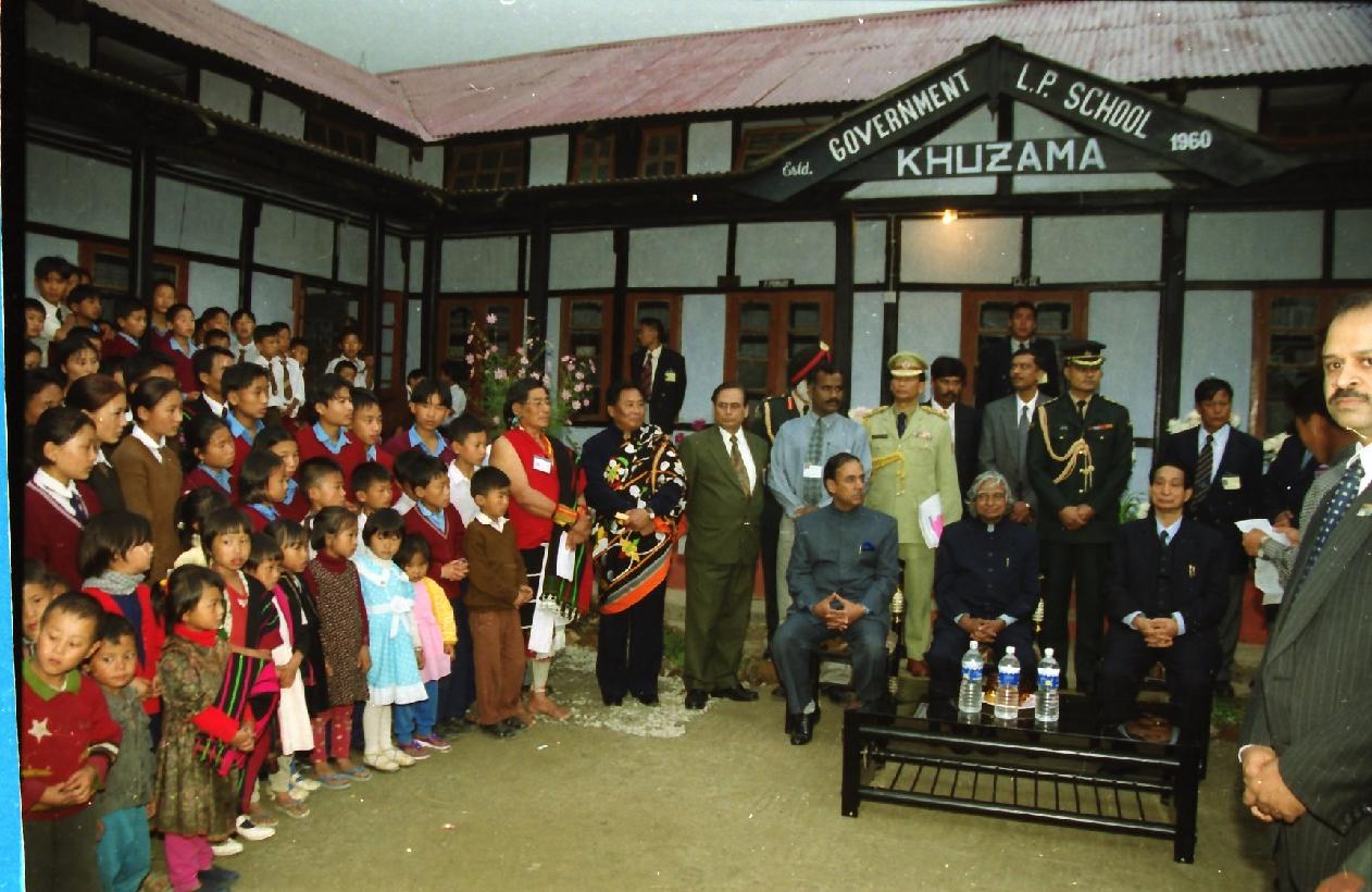 | Caption: | The President of India, Dr A P J Abdul Kalam visiting the Primary School at Khuzama in Nagaland on Oct 26, 2002 |