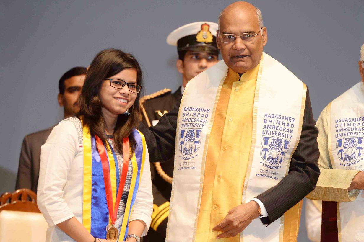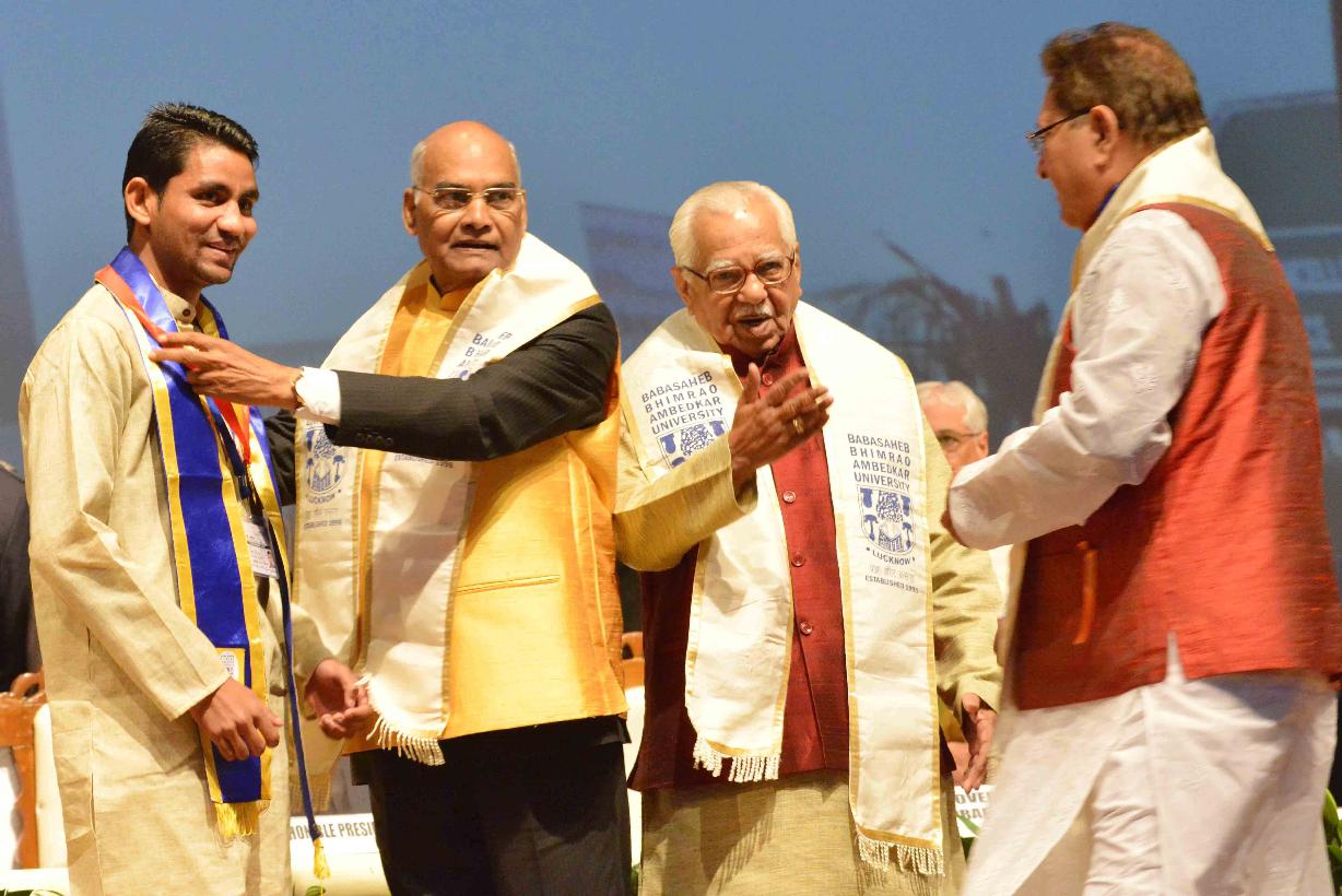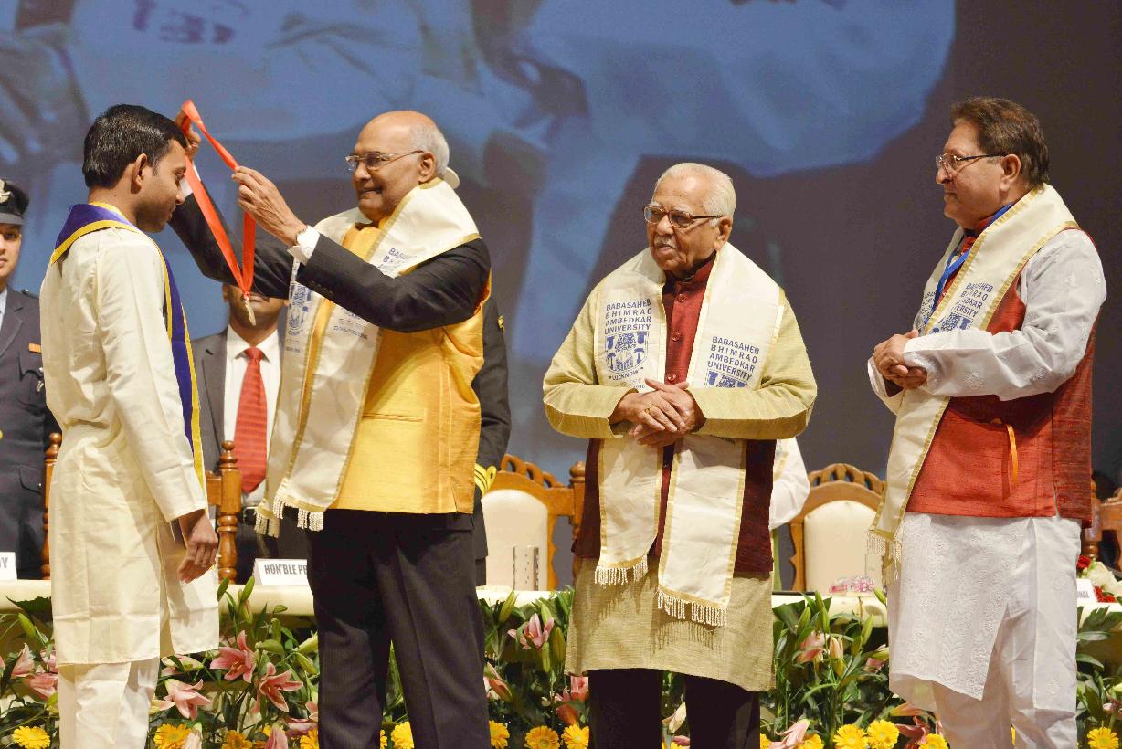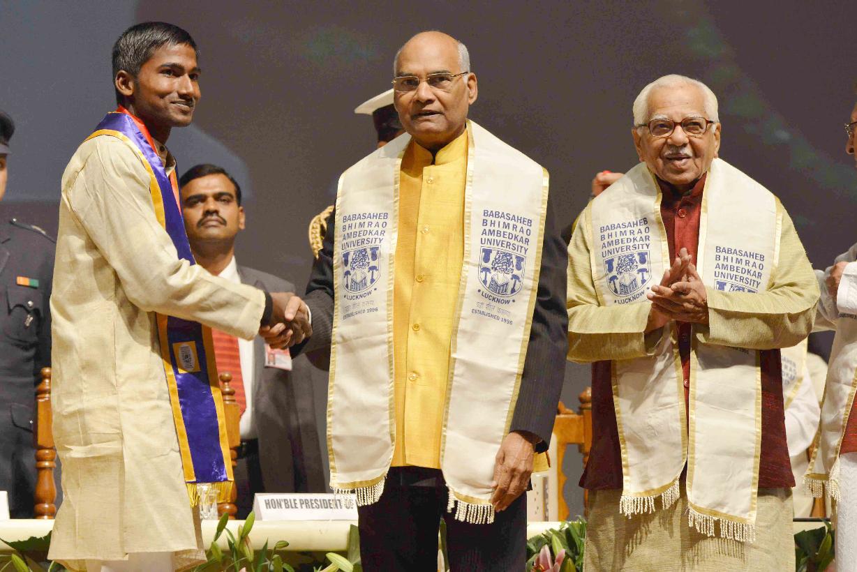 | Caption: | The President of India, Shri Ram Nath Kovind addressing the 7th Convocation of Babasaheb Ambedkar University and presenting medals to the students, at Lucknow, in Uttar Pradesh on December 15, 2017. |