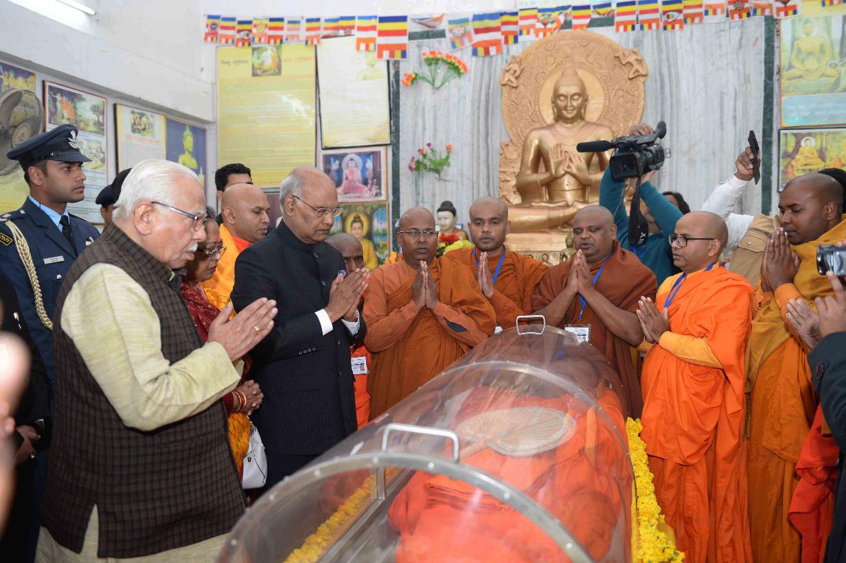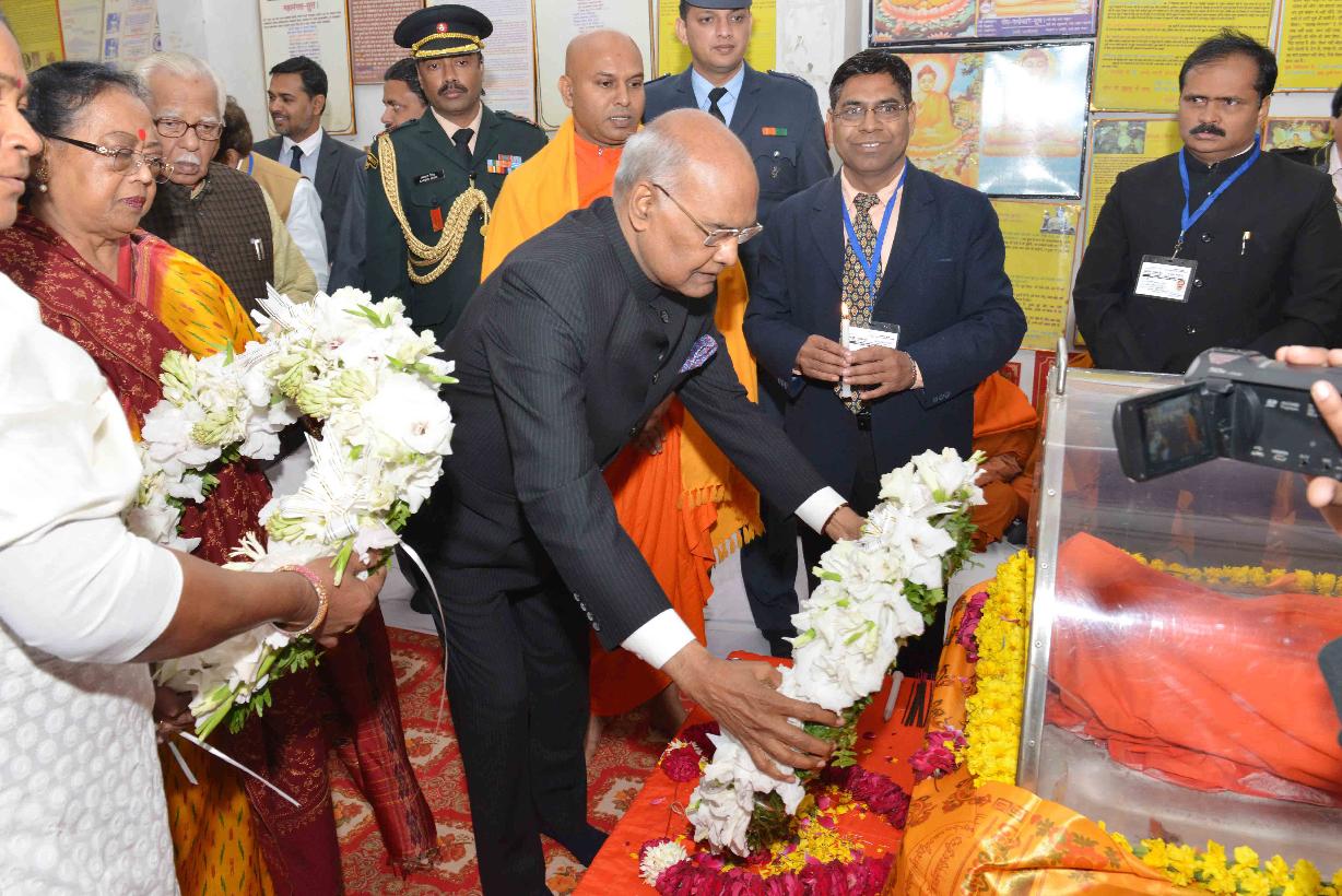 | Caption: | The President of India, Shri Ram Nath Kovind paying tributes at the mortal remains of Boudh Bikshu Bhadant Pragyanandji, at Lucknow, in Uttar Pradesh on December 15, 2017. |