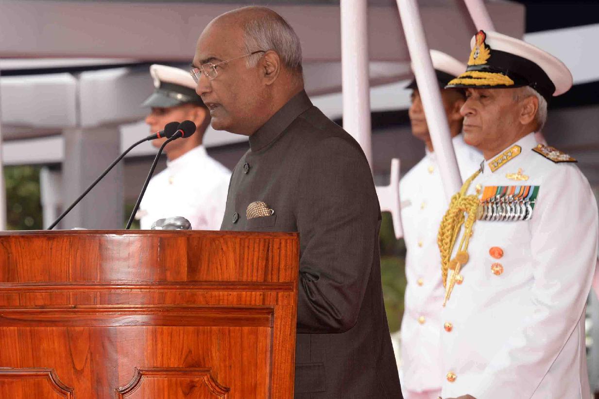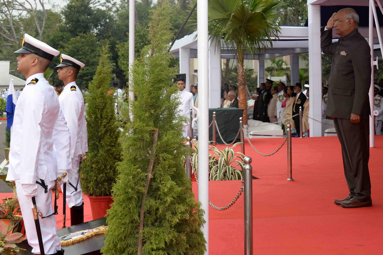 | Caption: | The President of India, Shri Ram Nath Kovind inspecting the Guard of Honour at the presentation of the colour to the Navy Submarine Arm of the Indian Navy, at Visakhapatnam, in Andhra Pradesh on December 08, 2017. |