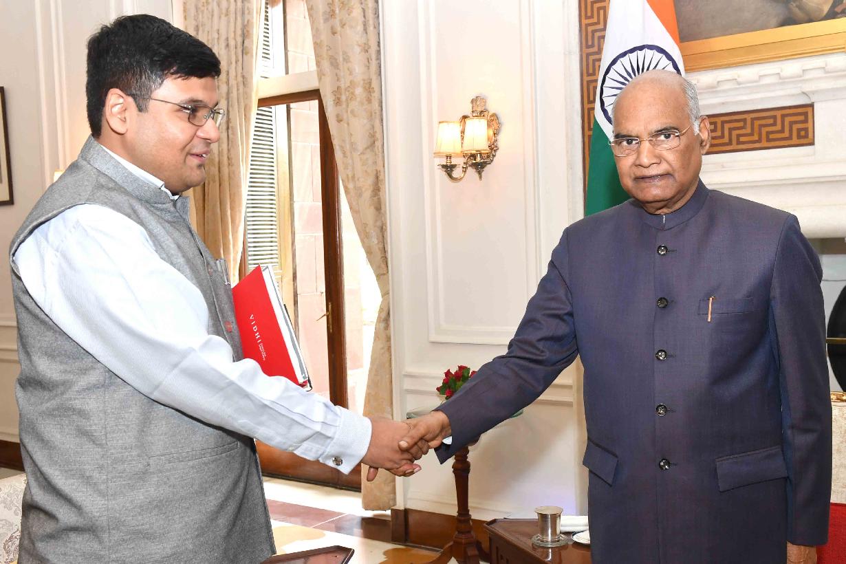 | Caption: | Dr. Arghya Sengupta, Research Director, Vidhi Centre for Lelgal Policy, New Delhi presenting his book 'Independence and Accountability of the Indian Higher Judiciary' to the President of India, Shri Ram Nath Kovind, at Rashtrapati Bhavan on May 16, 2019. |