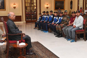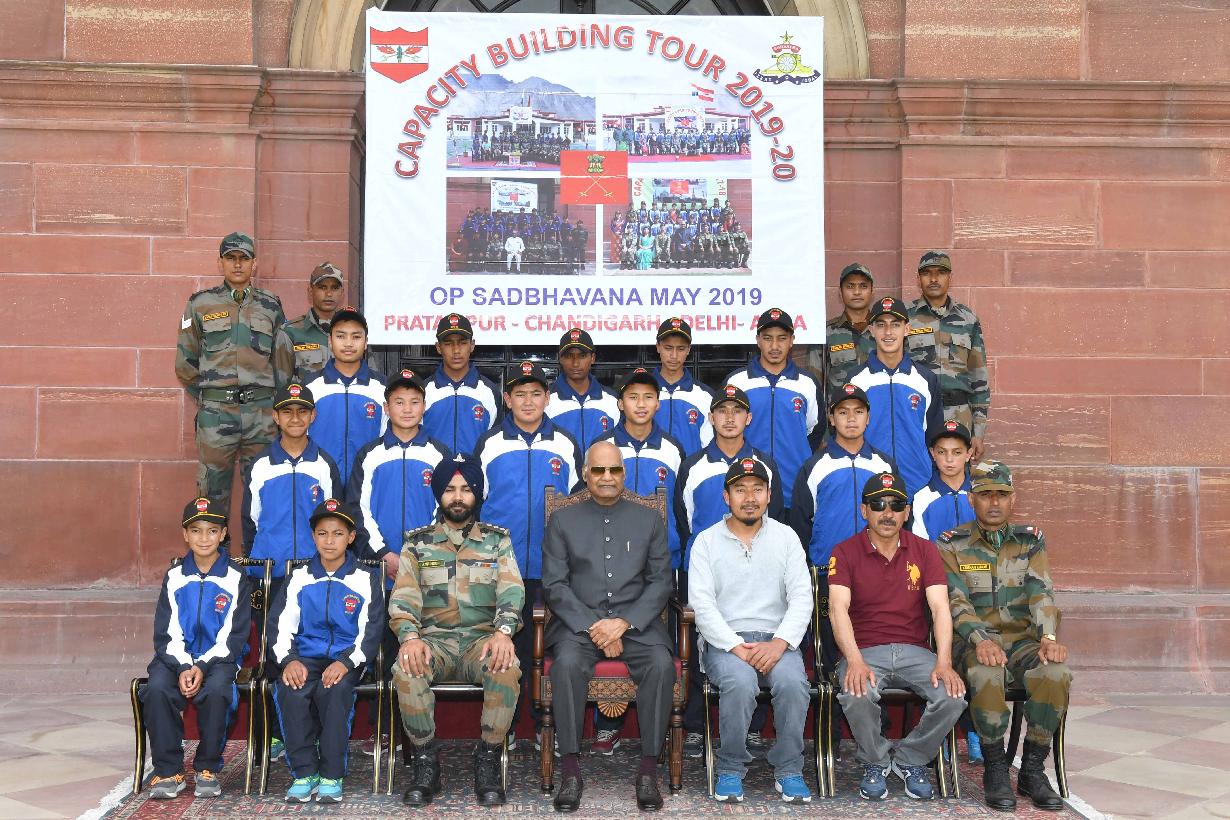| Caption: | The President of India, Shri Ram Nath Kovind meeting with the students and teachers from Nubra Valley, Leh, Jammu & Kashmir, attending Capacity Building Tour, at Rashtrapati Bhavan on May 17, 2019. |