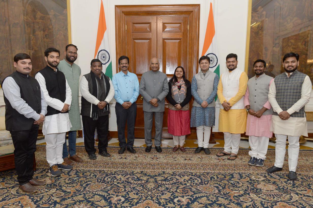 | Caption: | Prof. (Dr.) S. Subbiah, National President with others from Akhil Bharatiya Vidyarthi Parishad (ABVP) meeting with the President of India, Shri Ram Nath Kovind, at Rashtrapati Bhavan on December 18, 2019. |