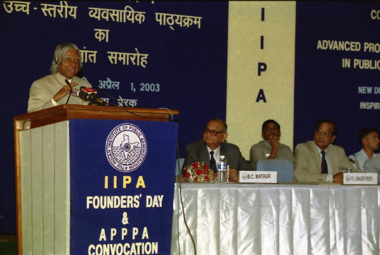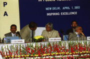 | Caption: | The President of India, Dr A P J Abdul Kalam at the Indian Institute of Public Administration Indraprastha Estate at Ring Road in New Delhi on April 01, 2003 |