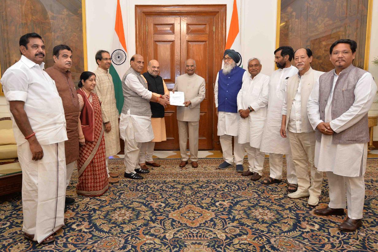 Ram Nath Kovind, Amit Shah, Prakash Singh Badal, Rajnath Singh, Nitish Kumar, Ram Vilas Paswan, Sushma Swaraj, Uddhav Thakeray, Nitin Gadkari, K. Palaniswami, Conrad Sangma, Neiphiu Rio |