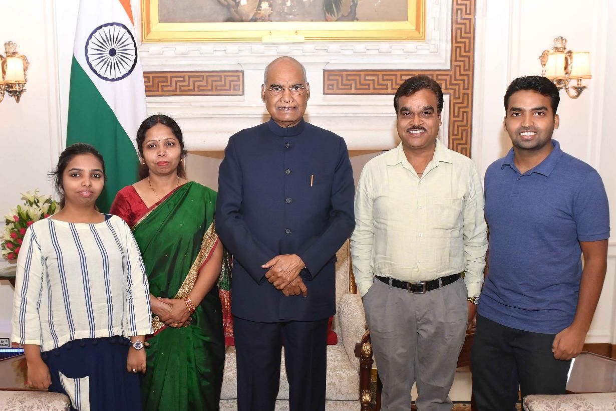 | Caption: | Smt. Neeru from Kanpur along with her family meeting with the President of India, Shri Ram Nath Kovind, at Rashtrapati Bhavan on June 07, 2019. |