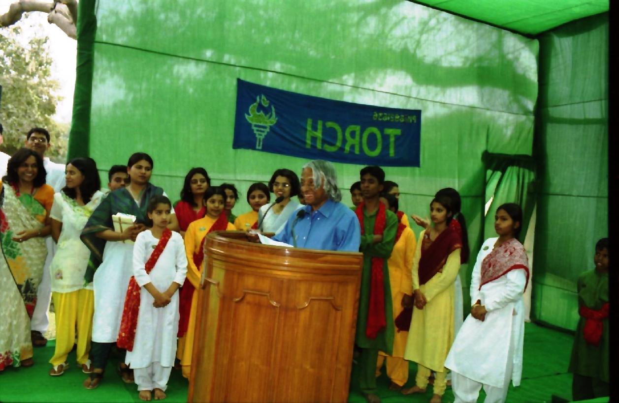 | Caption: | The President of India, Dr A P J Abdul Kalam at the Play cum Dance Programme by the Children of Training Organisation for Research Counselling in Health at Kalyan Kendra, President's Estate in New Delhi on April 04, 2003 |