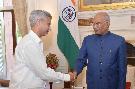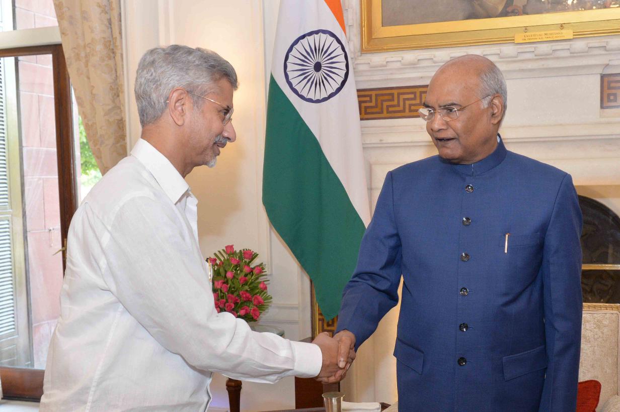 | Caption: | The Minister of External Affairs, Dr. S. Jaishankar along with the Minister of State for External Affairs and Parliamentary Affairs, Shri V. Muraleedharan meeting with the President of India, Shri Ram Nath Kovind, at Rashtrapati Bhavan on June 10, 2019. |