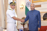 | Caption: | The Chief of the Naval Staff, Admiral Karambir Singh meeting with the President of India, Shri Ram Nath Kovind, at Rashtrapati Bhavan on June 10, 2019. |