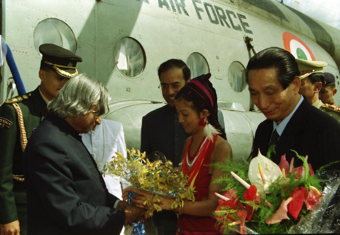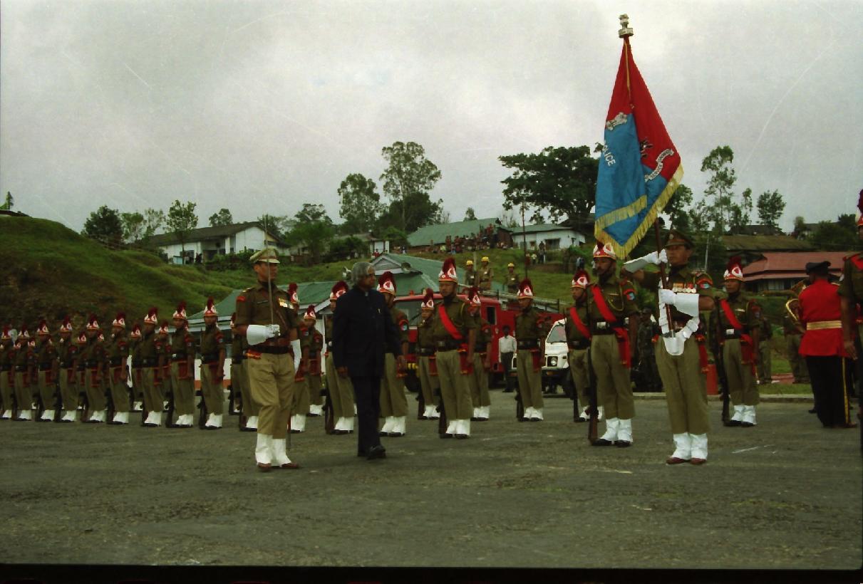 | Caption: | The President of India, Dr A P J Abdul Kalam at the Ceremonial Arrival at Kohima in Nagaland on Oct 26, 2002 |