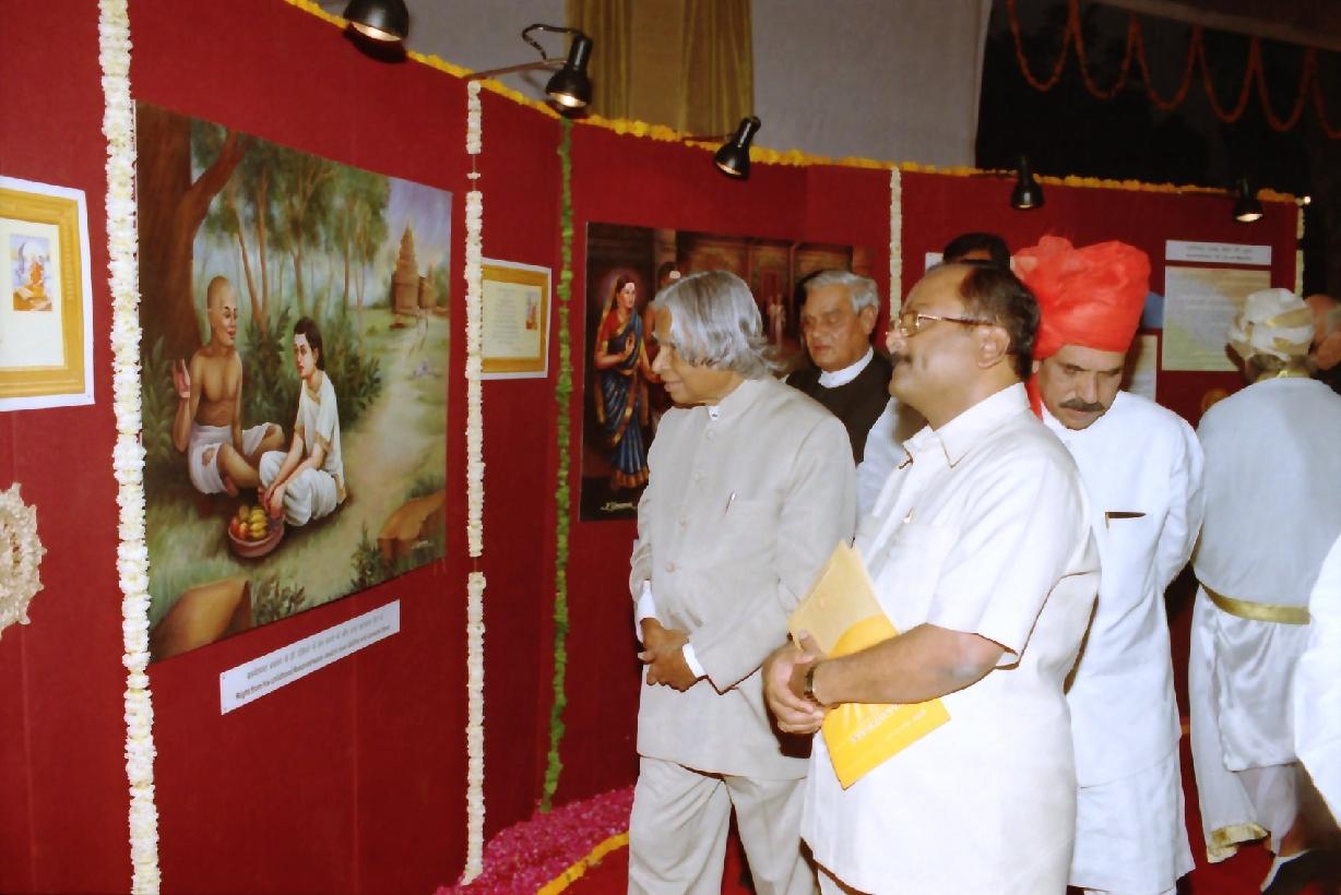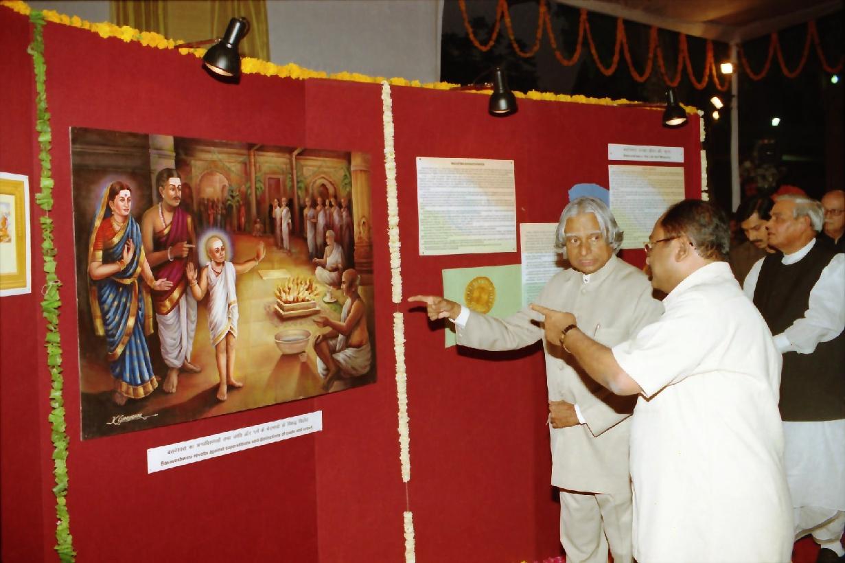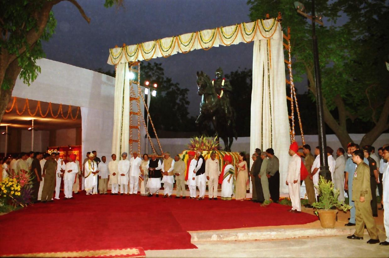 | Caption: | The President of India, Dr A P J Abdul Kalam unveiling the Statues of Chhatrapati Shivaji Maharaj and Mahatma Basaveshwara installed in the Parliament House Complex at Parliament House in New Delhi on April 28, 2003 |