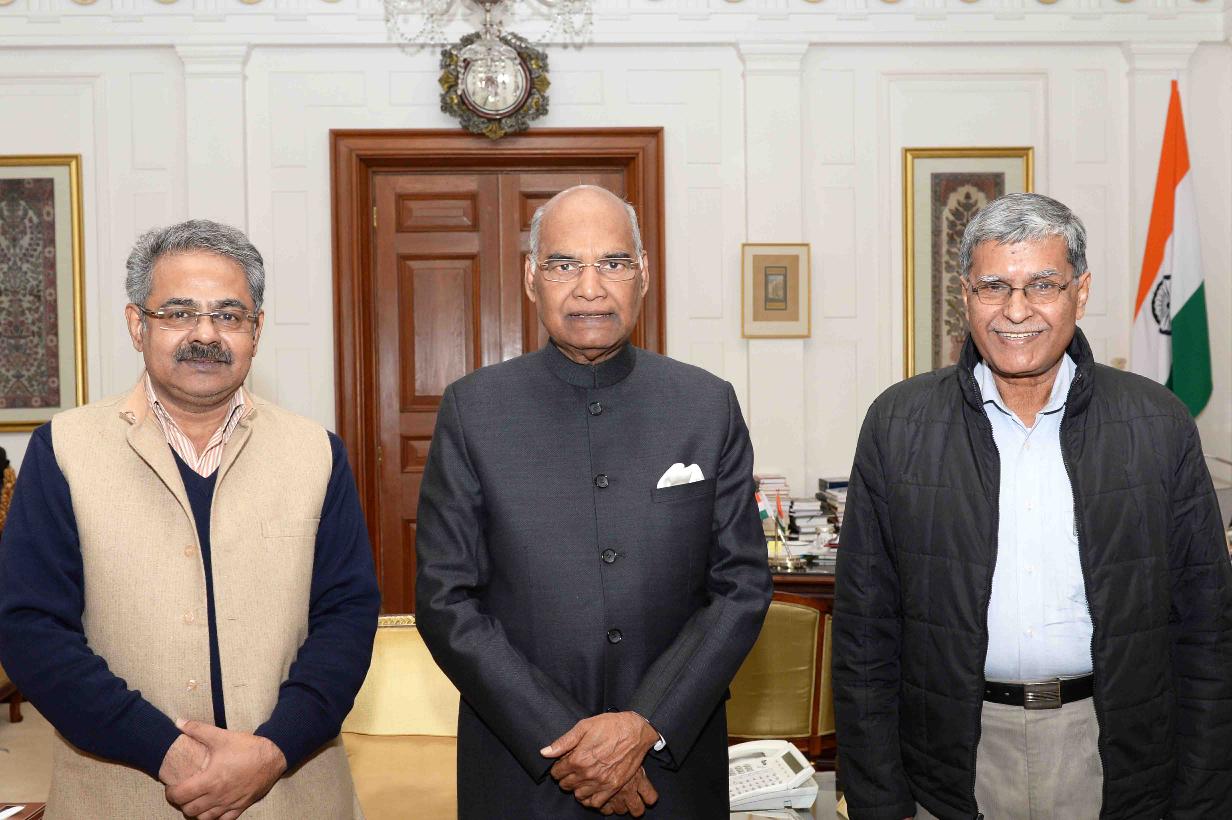 | Caption: | Shri Raj Kumar Bhatia along with Shri Avanijesh Awasthi from PGDAV College, University of Delhi meeting with the President of India, Shri Ram Nath Kovind, at Rashtrapati Bhavan on December 21, 2017. |