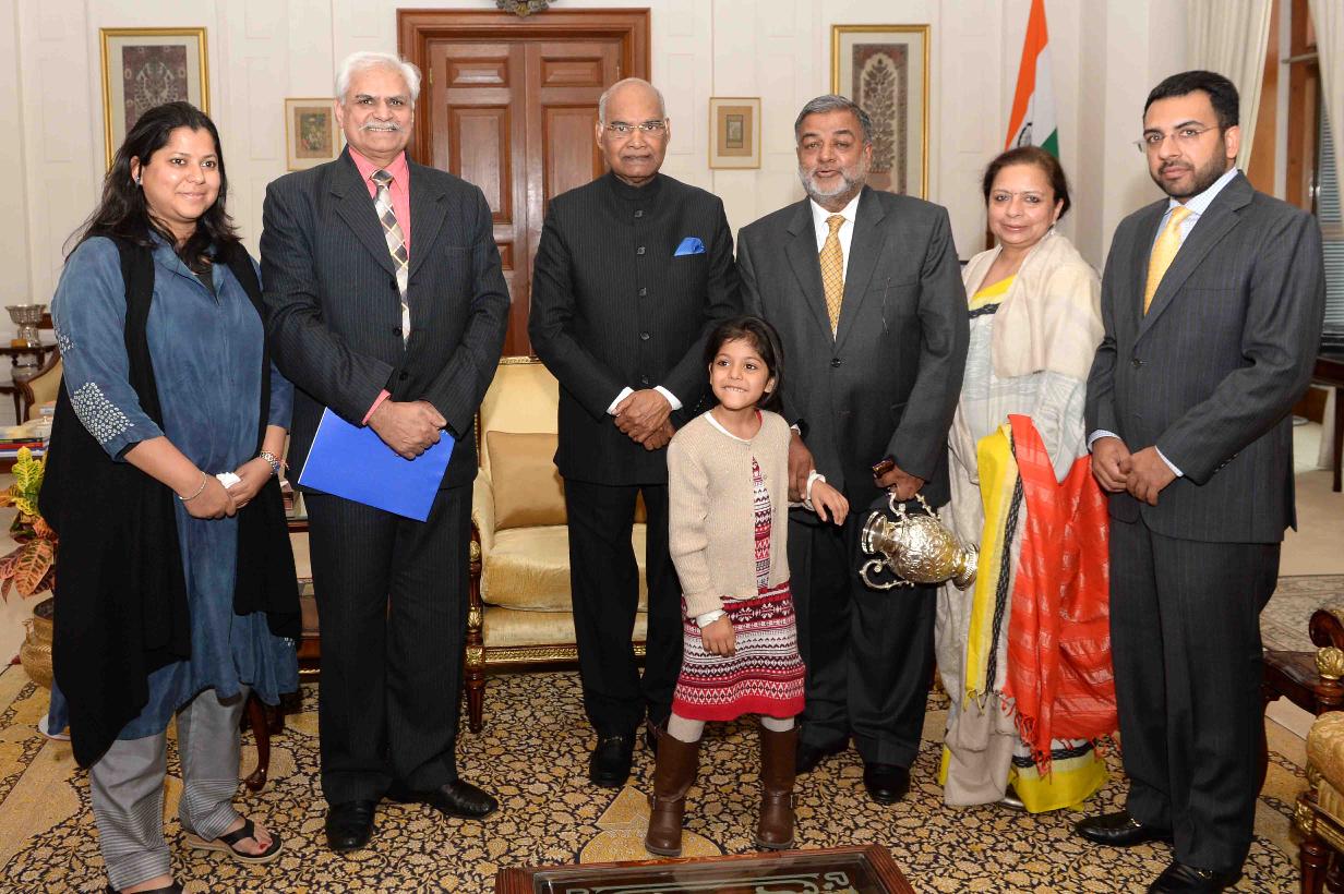 | Caption: | Dr. Devender Kumar Modi, Chairperson, Dr. KN Modi University and Dr. Kedar Nath Modi Foundation, Delhi alongwith his family members meeting with the President of India, Shri Ram Nath Kovind, at Rashtrapati Bhavan on December 22, 2017. |