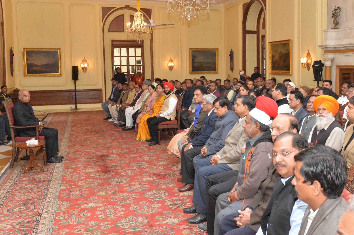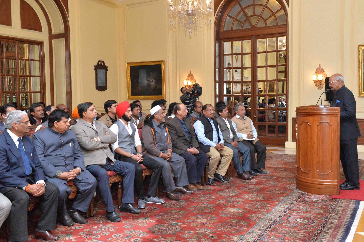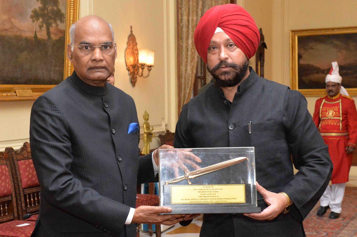 | Caption: | Shri Gurinder Singh, President, All India Small & Medium Newspapers Federation alongwith the delegates participating in the 47th Annual Session of the Federation meeting with the President of India, Shri Ram Nath Kovind, at Rashtrapati Bhavan on December 22, 2017. |