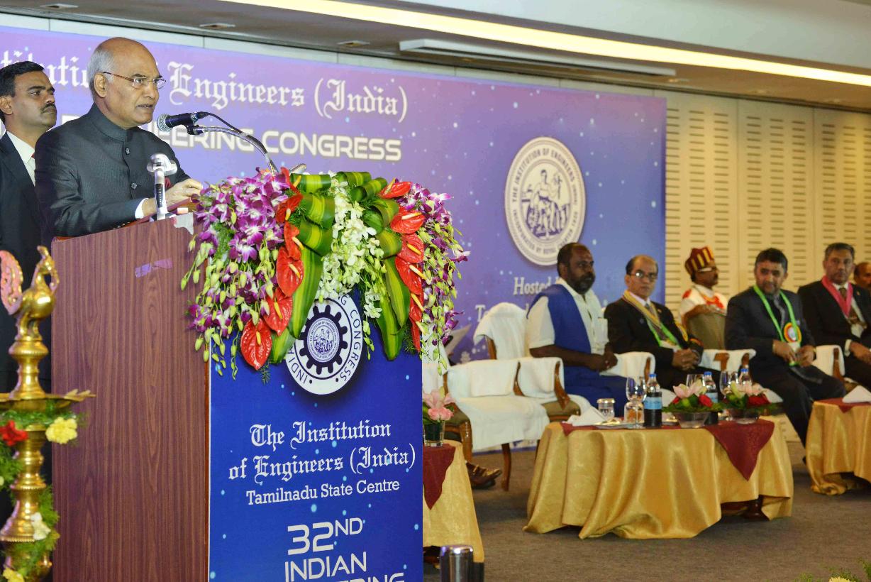 | Caption: | The President of India, Shri Ram Nath Kovind addressing at the valedictory function of the 32nd Indian Engineering Congress, organised by the Institution of Engineers (India), at Chennai, in Tamil Nadu on December 23, 2017. |