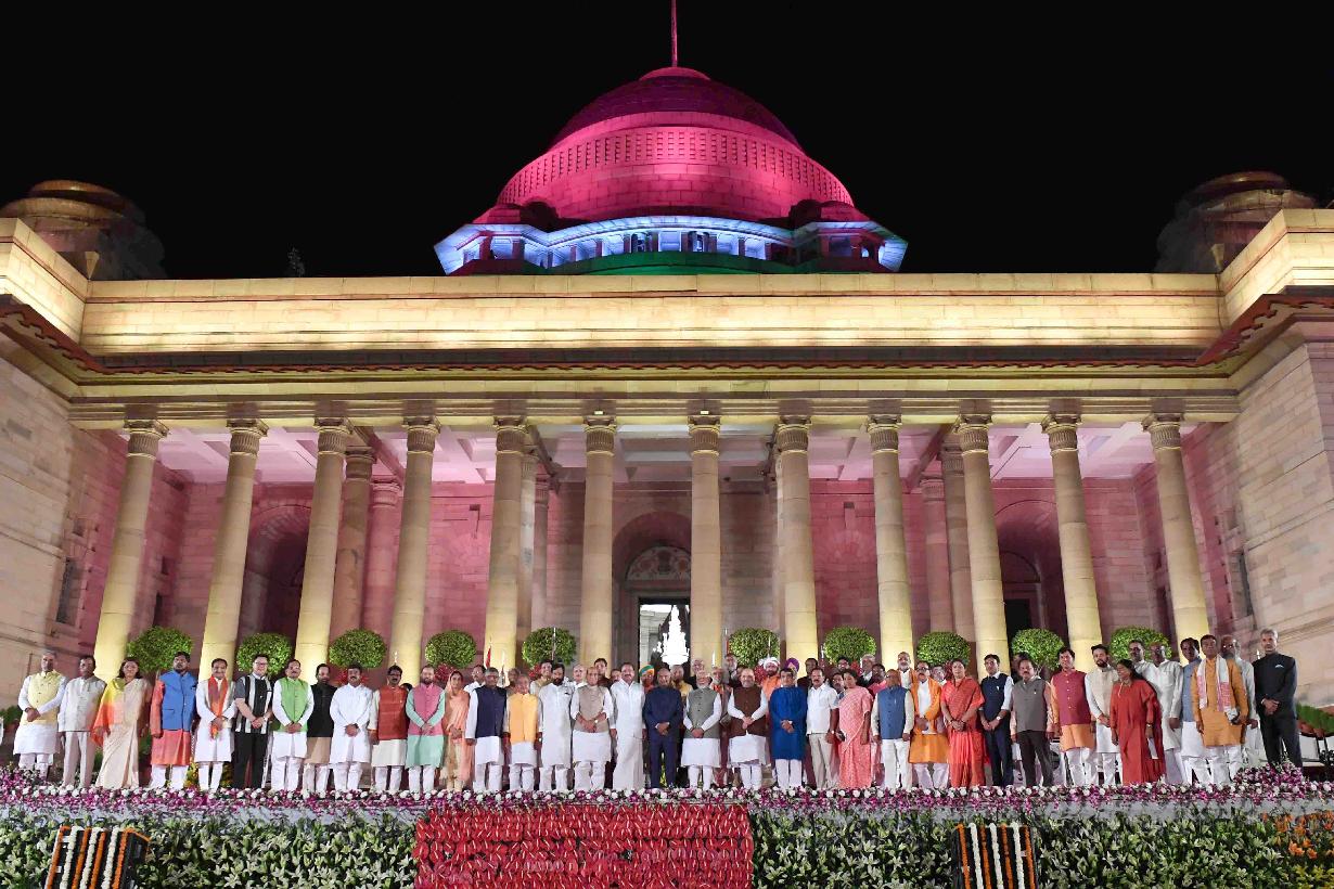 | Caption: | The President of India, Shri Ram Nath Kovind along with the Vice President of India, Shri M. Venkaiah Naidu, the Prime Minister of India, Shri Narendra Modi and other members of the Union Council of Ministers, after the Swearing-in Ceremony, at Rashtrapati Bhavan on May 30, 2019. |