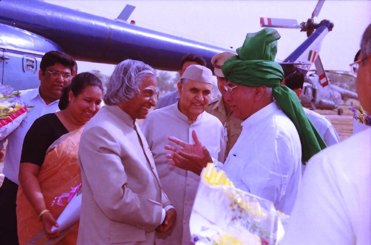 | Caption: | The President of India, Dr A P J Abdul Kalam arriving at Bhora Kalan Helipad in Haryana on April 19, 2003 |