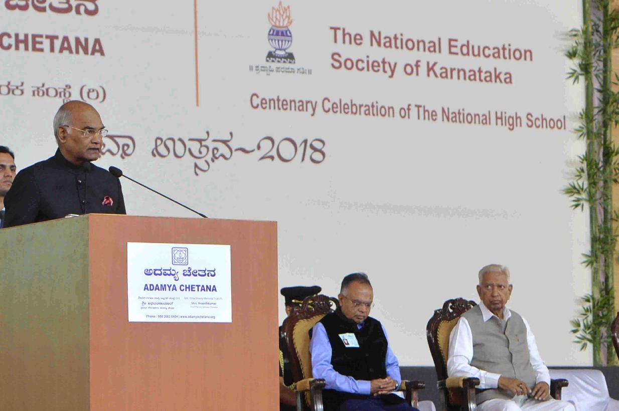 | Caption: | The President of India, Shri Ram Nath Kovind inaugurating the Adamya Chetana Seva Utsav 2018 & the centenary celebrations of National High School, at Bengaluru, in Karnataka on December 30, 2017. |
