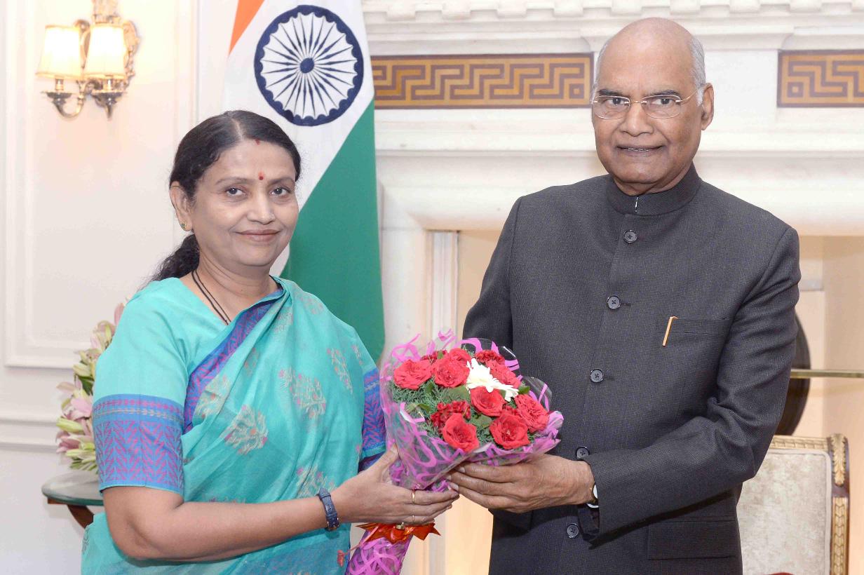 | Caption: | The Ex. Union Minister of State for Agriculture & Farmers Welfare, Smt. Krishna Raj meeting with the President of India, Shri Ram Nath Kovind, at Rashtrapati Bhavan on June 21, 2019. |