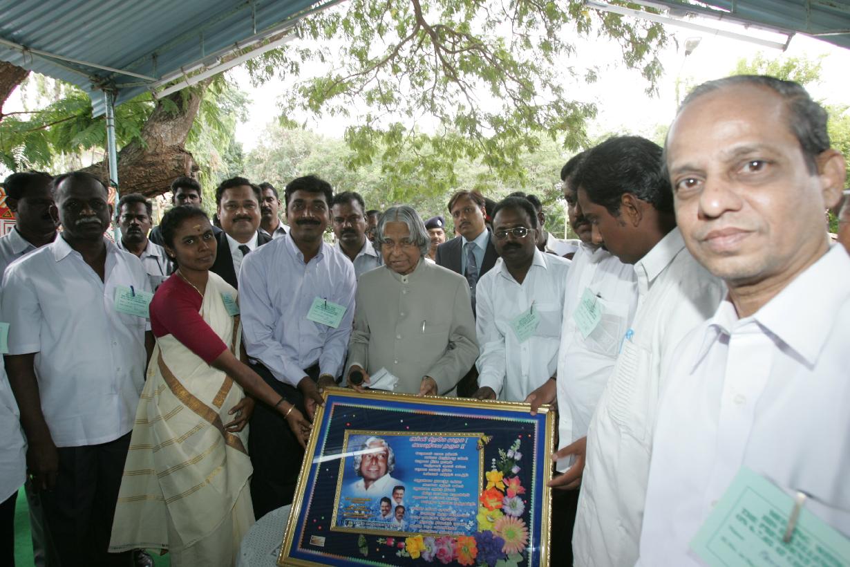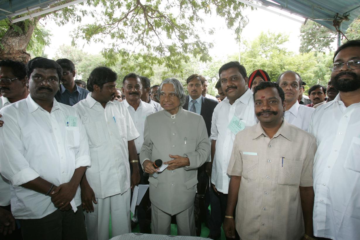 | Caption: | The President of India, Dr A P J Abdul Kalam with the Members of Green Valley Revolution at Coimbatore in Tamil Nadu on July 06, 2005 |