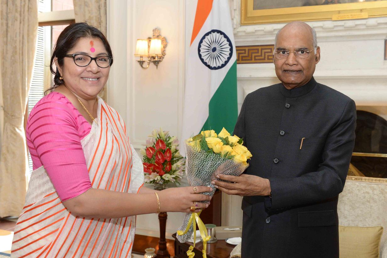 | Caption: | Ms. Locket Chatterjee, MP (Lok Sabha) meeting with the President of India, Shri Ram Nath Kovind, at Rashtrapati Bhavan on June 27, 2019. |