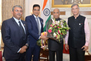 | Caption: | Shri B.K. Goenka, President, Dr. Niranjan Hiranandani, Senior Vice President and Shri Saurabh Sanyal, Deputy Secretary General, ASSOCHAM meeting with the President of India, Shri Ram Nath Kovind, at Rashtrapati Bhavan on June 27, 2019. |