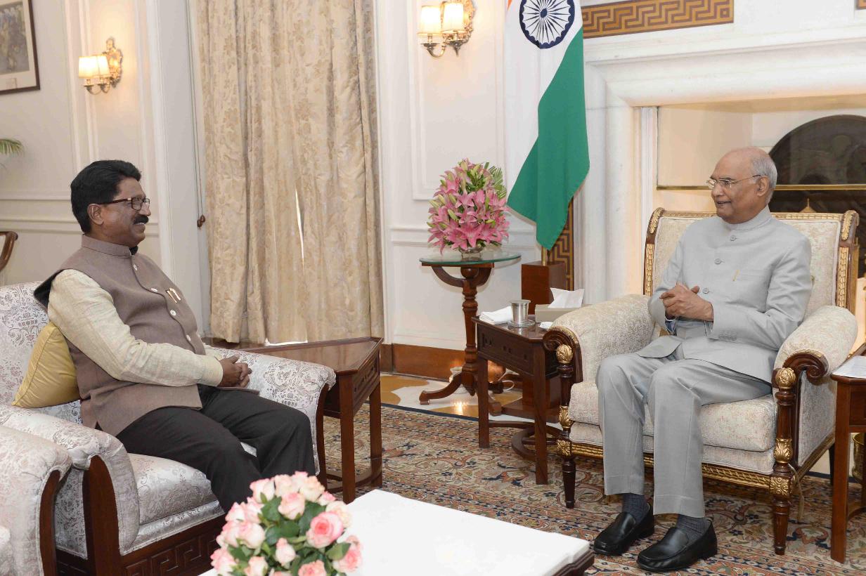 | Caption: | The Minister for Heavy Industries and Public Enterprises, Shri Arvind Ganpat Sawant meeting with the President of India, Shri Ram Nath Kovind, at Rashtrapati Bhavan on July 02, 2019. |