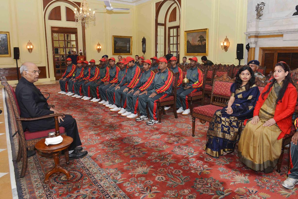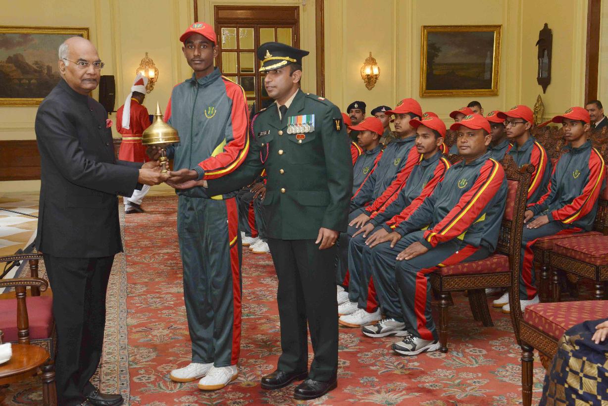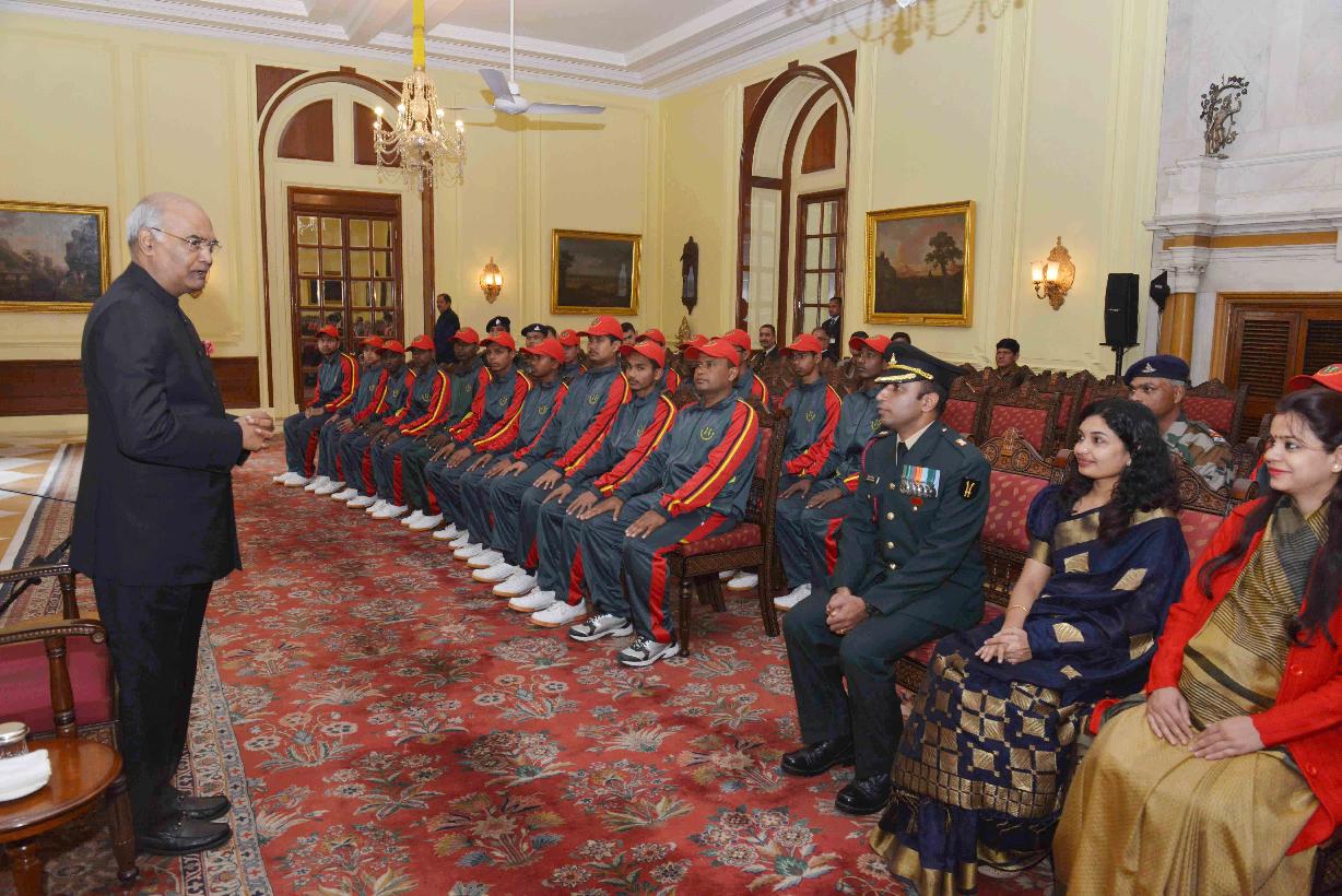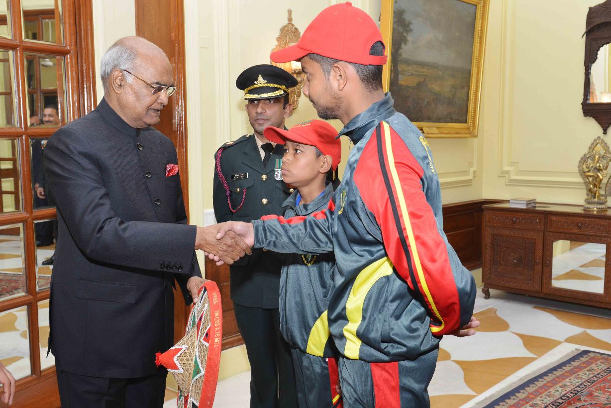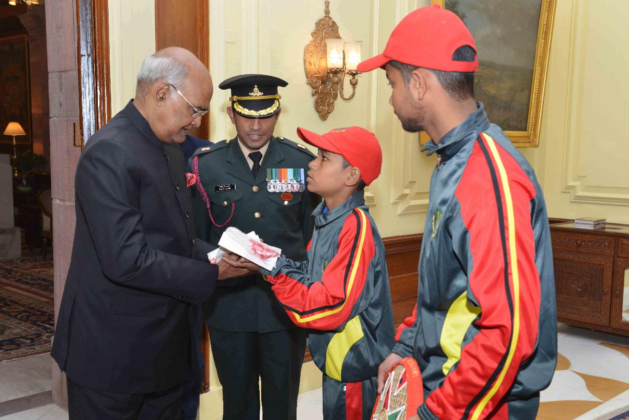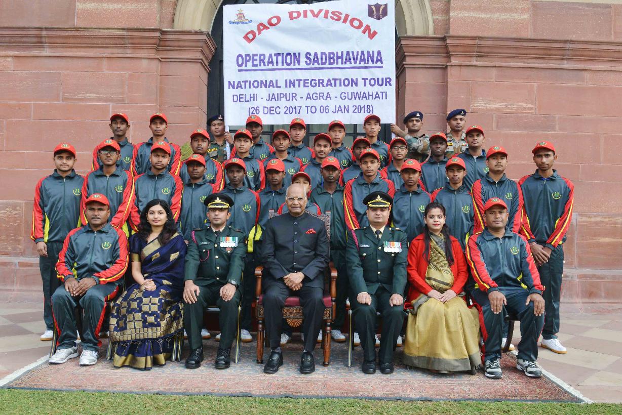 | Caption: | The students from Dibrugarh and Charaideo Districts of Assam attending National Integration Tour, organised by the HQ 2 Mountain Artillery Brigade meeting with the President of India, Shri Ram Nath Kovind, at Rashtrapati Bhavan on January 02, 2018. |