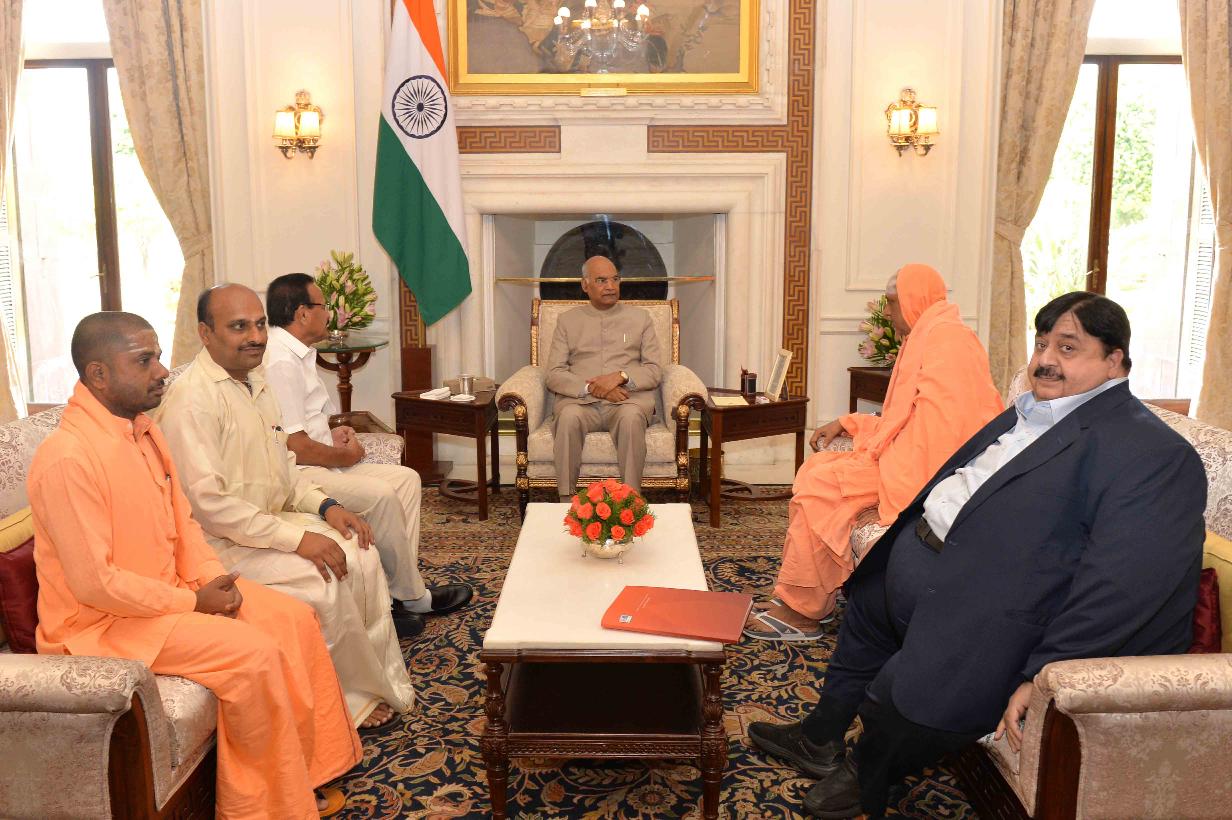 | Caption: | The Minister of Chemicals and Fertilizers, Shri D.V. Sadananda Gowda along with His Holiness Jagadguru Swamiji Shri Suttur Math, Mysore and others meeting with the President of India, Shri Ram Nath Kovind, at Rashtrapati Bhavan on June 13, 2019. |