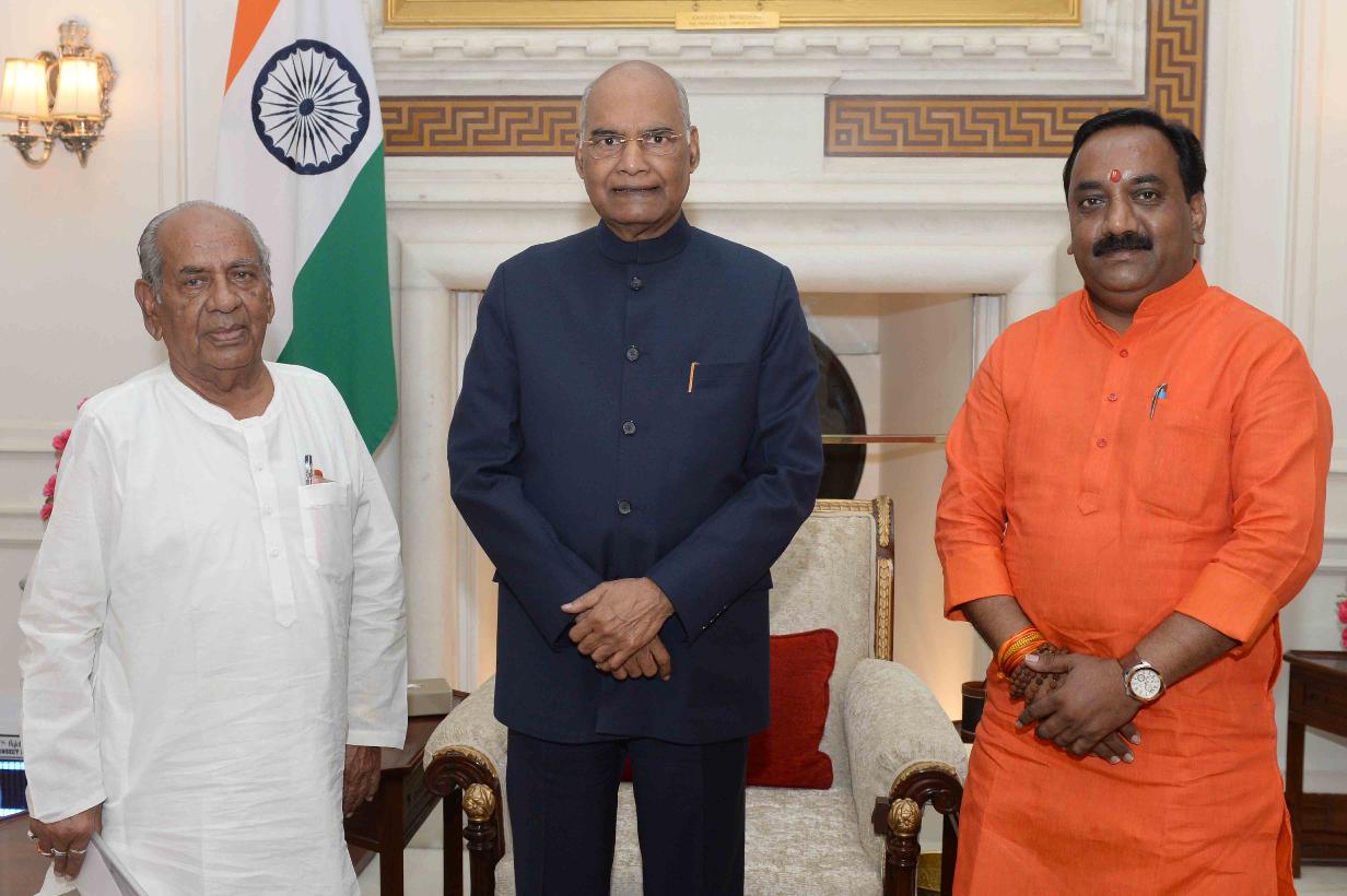 | Caption: | Shri Narayan Singh Kesari, Ex-MP (RS) along with his son Shri Bhupendra Singh Kesari meeting with the President of India, Shri Ram Nath Kovind, at Rashtrapati Bhavan on June 18, 2019. |