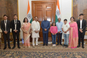| Caption: | Shri Hemant Bhati, Youth President of Akhil Bhartiya Koli Samaj from Ajmer along with his family meeting with the President of India, Shri Ram Nath Kovind, at Rashtrapati Bhavan on July 24, 2019. |