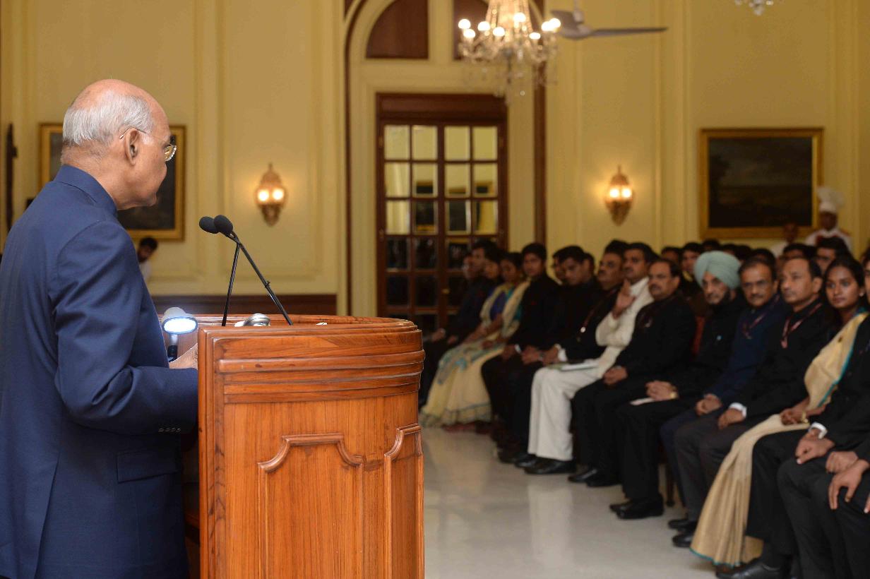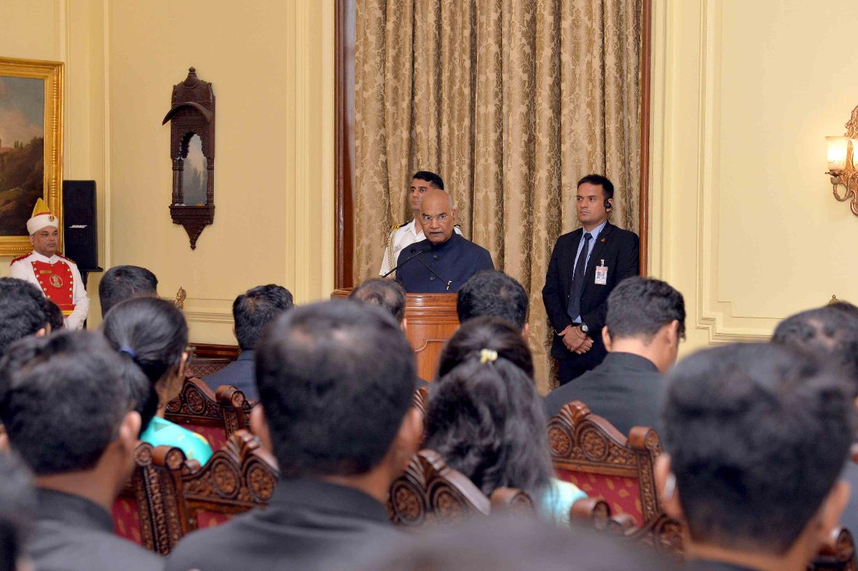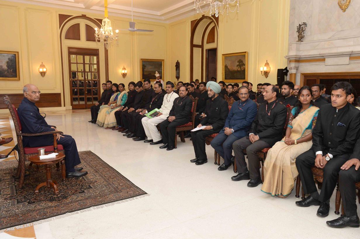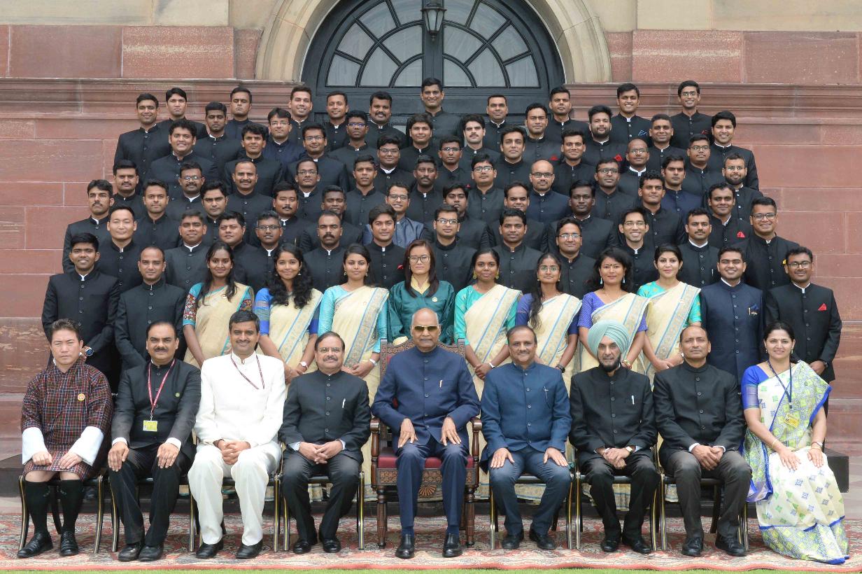 | Caption: | The President of India, Shri Ram Nath Kovind meeting with the Probationers of Indian Forest Service (2018-20 Batch) from Indira Gandhi National Forest Academy, Dehradun, at Rashtrapati Bhavan on July 23, 2019. |