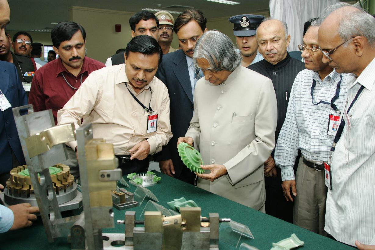| Caption: | The President of India, Dr A P J Abdul Kalam visiting the Casting Facility at Defence Metallurgical Research Laboratory (DMRL), Hyderabad in Andhra Pradesh on Aug 05, 2005 |