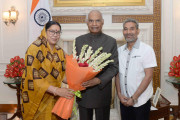| Caption: | Smt. Sandhya Ray, MP (Lok Sabha) along with her husband Shri Suman Ray meeting with the President of India, Shri Ram Nath Kovind, at Rashtrapati Bhavan on July 25, 2019. |