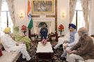 | Caption: | The Minister of Food Processing Industries, Smt. Harsimrat Kaur Badal along with Shri Sukhbir Singh Badal, MP (Lok Sabha), Shri Naresh Gujral, MP (Rajya Sabha), Sardar Balwinder Singh Bhunder, MP (Rajya Sabha) and Sardar Gobind Singh Longowal, President, Shiromani Gurdwara Parbandhak Committee, Amritsar meeting with the President of India, Shri Ram Nath Kovind, at Rashtrapati Bhavan on July 27, 2019. |